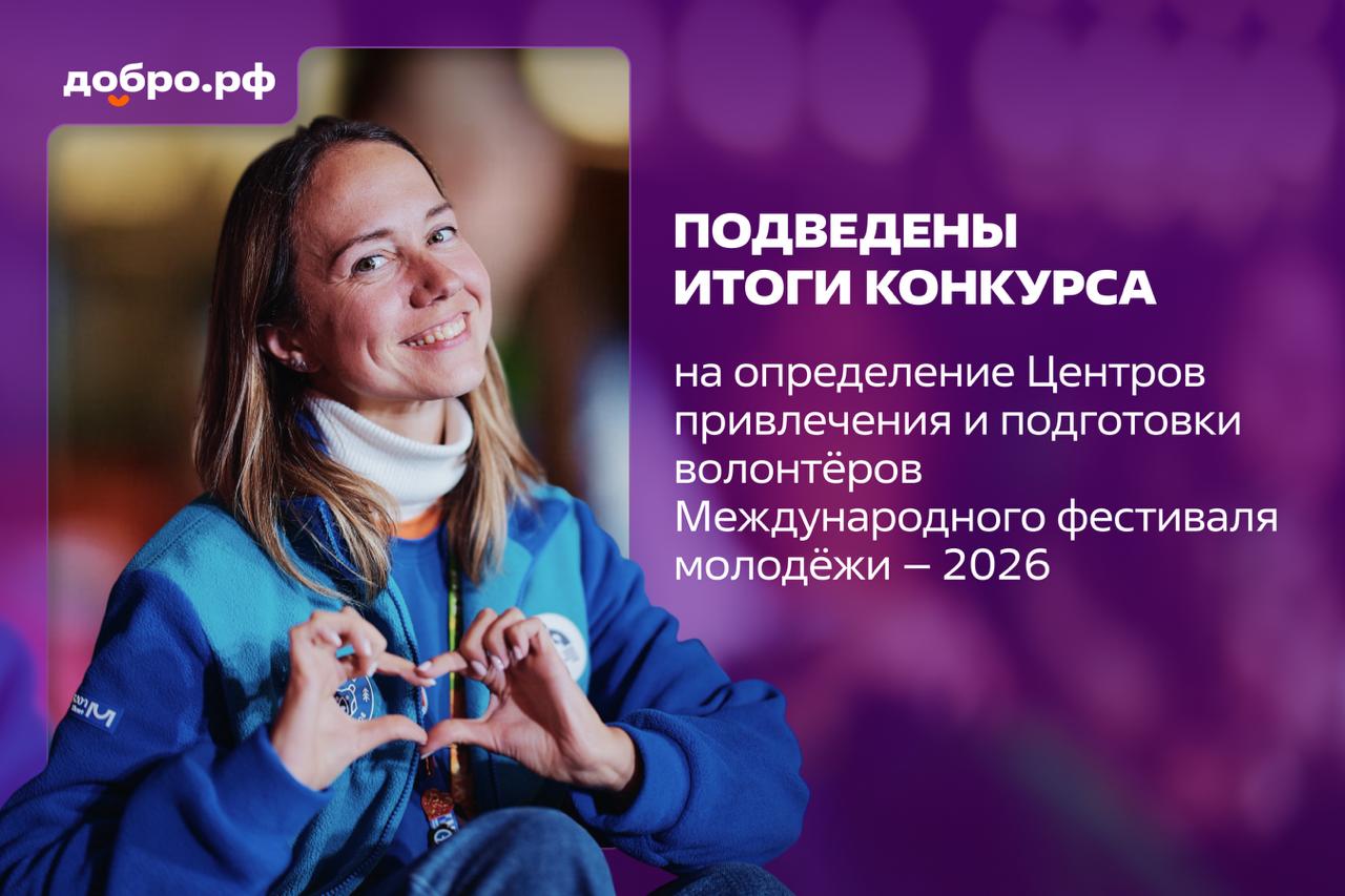 Мы подвели итоги Всероссийского конкурса на определение центров привлечения и подготовки волонтёров МФМ – 2026. Эксперты из Росмолодёжи, Ассоциации Добро.pф и Дирекции Фестиваля оценили опыт команд и концепции мотивационных программ для волонтёров. Конкуренция была очень высокой!