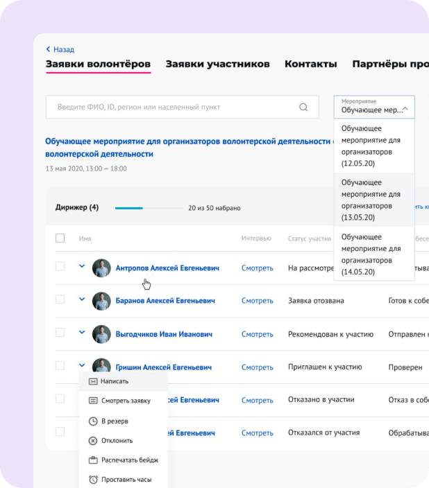 Поиск и обучение волонтёров