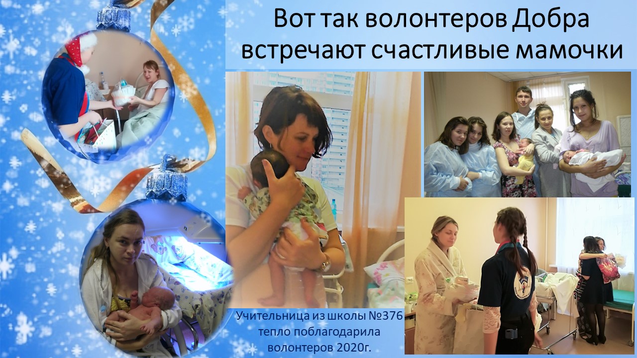 Они приносят в Роддом подарки. которые собирают школьники Московского района. Встреча с Новым человеком Нового года-это всегда волнительно. Ведь в Мир приходит Новый человек. С какой миссией он пришел к нам? Что ждет его?
