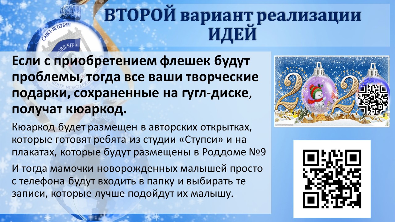 Но в 2021 году такая акция оказалась под угрозой. Пандемия коронавируса внесла свои ограничение. Но Тинэйдджеры не намерены сдаваться и придумали НОВЫЙ формат акции. Теперь она будет дистанционная!!! Новых жителей Петербурга, России 1 января будет ждать виртуальный подарок на гугл-диске.