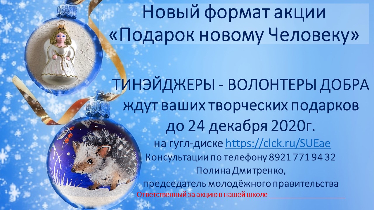 Предлагаем всем, желающим подключиться к новогодне-рождественской акции "Подарок новому Человеку2021"