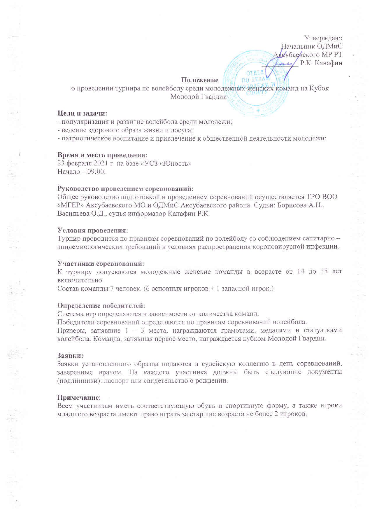 Турнир по волейболу среди молодёжных женских команд на кубок Молодой Гвардии посвящённый дню Защитника Отечества