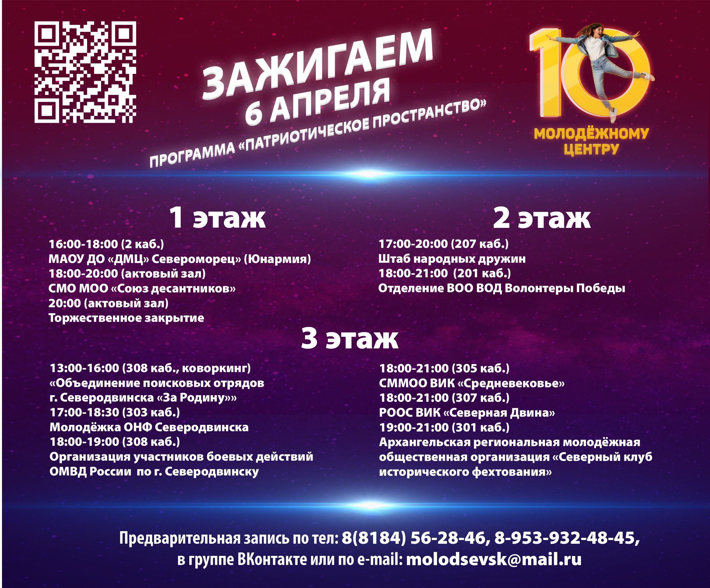 На котором вы сможете познакомиться с добровольческой деятельностью молодежных гражданско-патриотических, военно- исторических и поисковых молодежных объединений города Северодвинска: Юнармия, Союз десантников, Штаб народных дружин, Волонтеры Победы, поисковые отряды "За родину", Молодёжка ОНФ, общественная организация сотрудников-участников боевых действий ОМВД, Средневековье, Северная Двина и Северный клуб исторического фехтования.