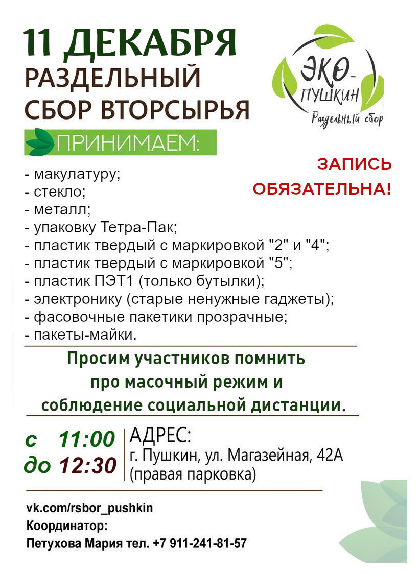 Акция по раздельному сбору отходов у Дома молодёжи "Царскосельский" пройдет 14августа 2021 г. с 11:00 до 12:00