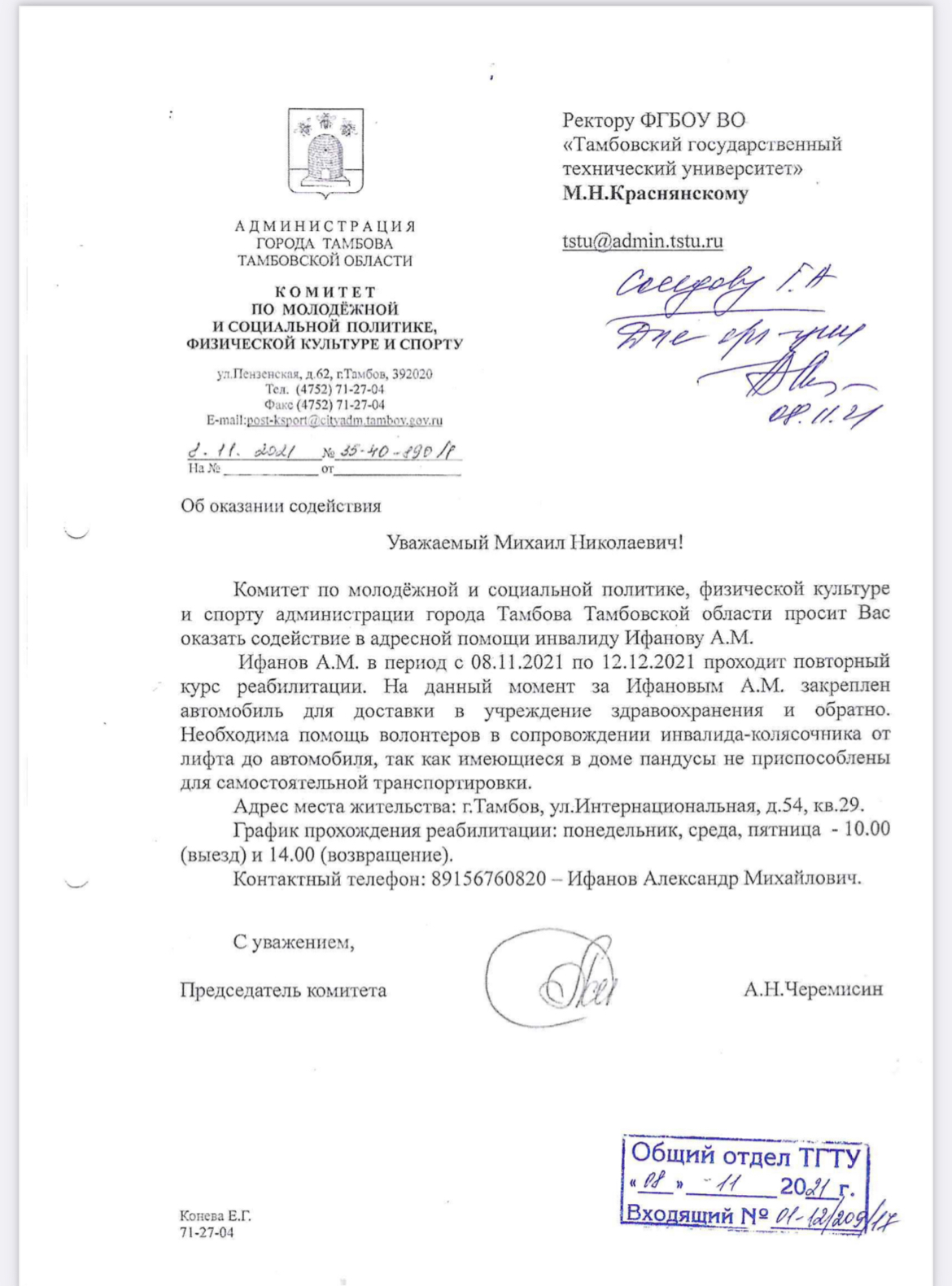 Помочь людям с инвалидностью в рамках проекта города Тамбова "Люди с большими возможностями". Подготовка и обучение волонтеров проводится при поддержке ТРО МООИ «Ассоциация инвалидов Аппарель» и Отдела по работе с инвалидами управления социальной защиты Тамбовской области.