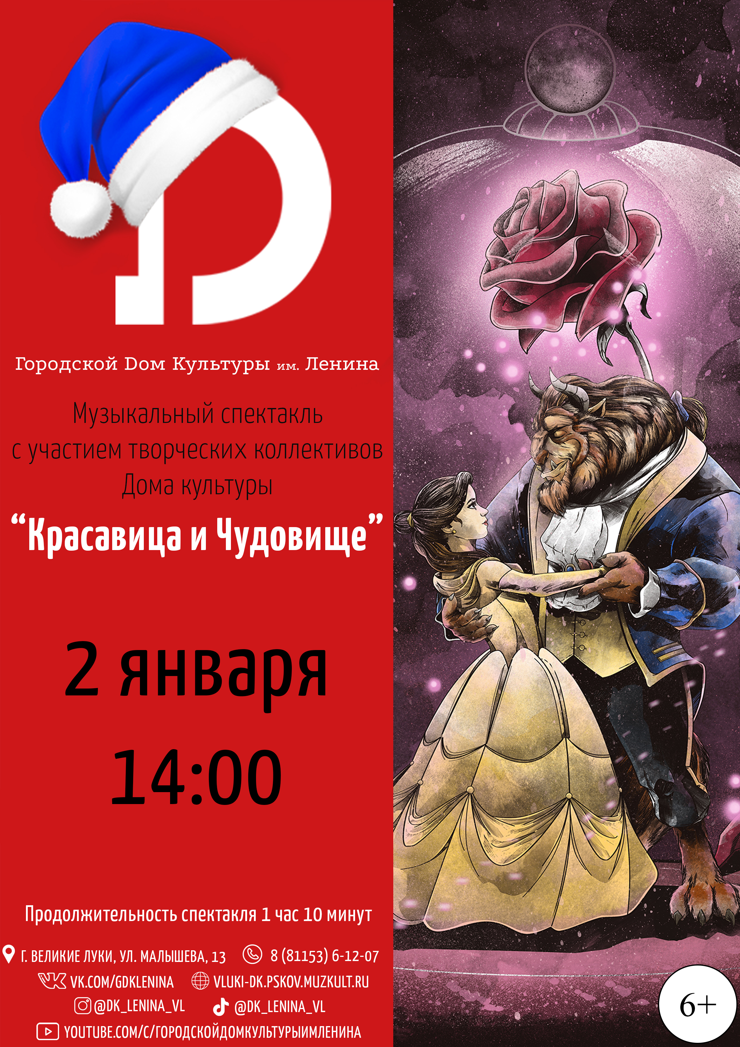 Городской дом культуры им. Ленина приглашает всех детей и их родителей посетить музыкальный спектакль для всей семьи «Красавица и Чудовище» с участием Образцового хореографического коллектива «Жемчужина» и Народного коллектива театра танца Мистерия.