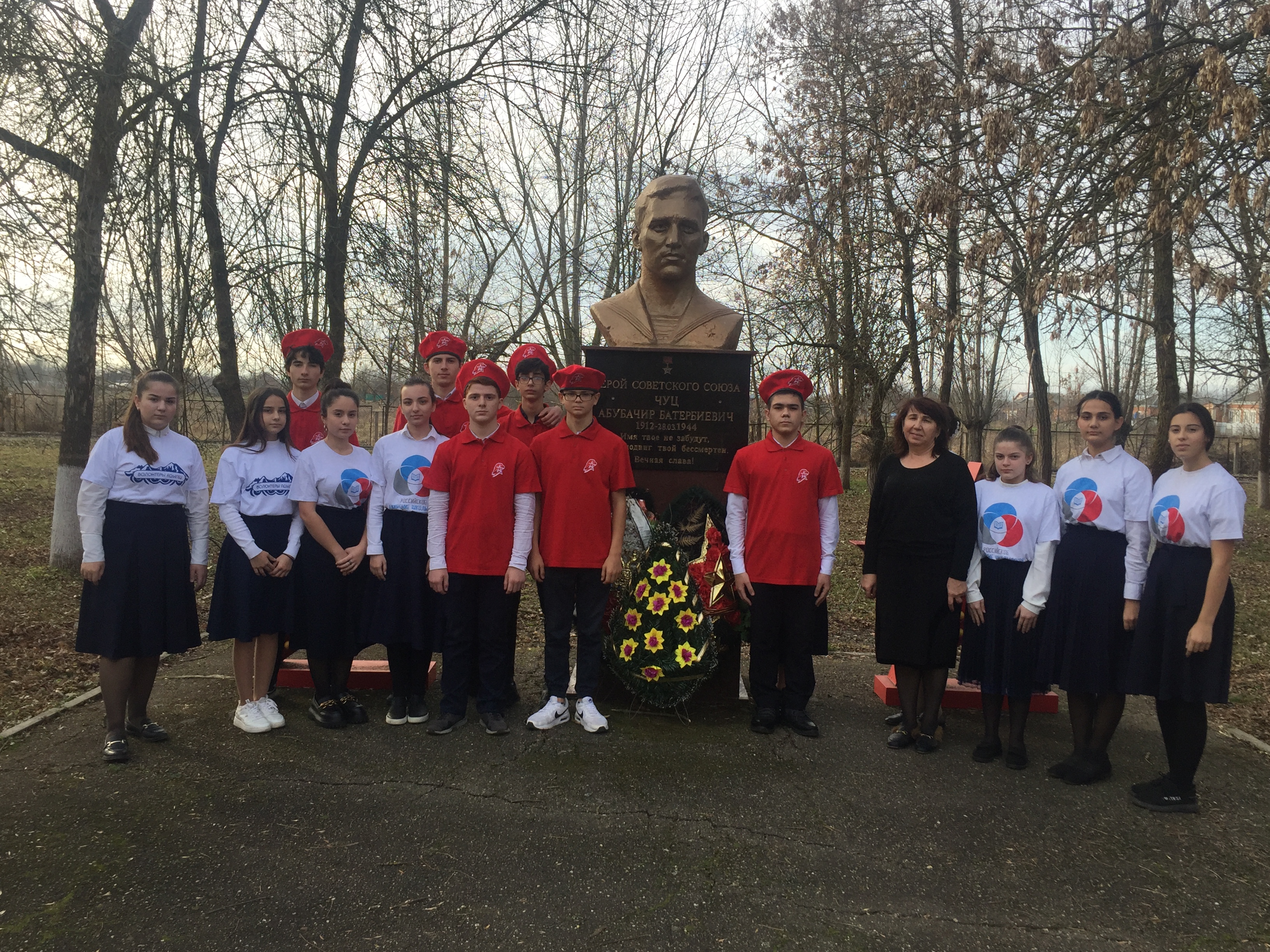 День Героев Отечества 9 декабря — праздник нашей боевой славы, наших ратных традиций и воинской доблести. В этот день мы чествуем Героев Российской Федерации и Героев Советского Союза, кавалеров ордена Славы и ордена Святого Георгия. Это лучшие люди страны, которые в трудное время пришли на спасение другим, не думая о себе, а порой и жертвуя своей жизнью. В нашей школе прошли мероприятия . Уроки Мужества, экскурсии в школьный музей и Возложение венка к памятнику Героя Советского Союза Чуц А.Б.