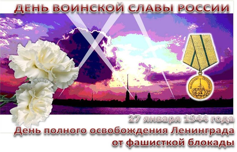 День воинской славы России — День полного освобождения Ленинграда от фашистской блокады (1944 год) — отмечается ежегодно 27 января в соответствии с Федеральным законом от 13 марта 1995 года № 32-ФЗ «О днях воинской славы (победных днях) России». Россия отдает дань подвигу жителей блокадного Ленинграда и тех, кто освободил город из вражеского кольца.