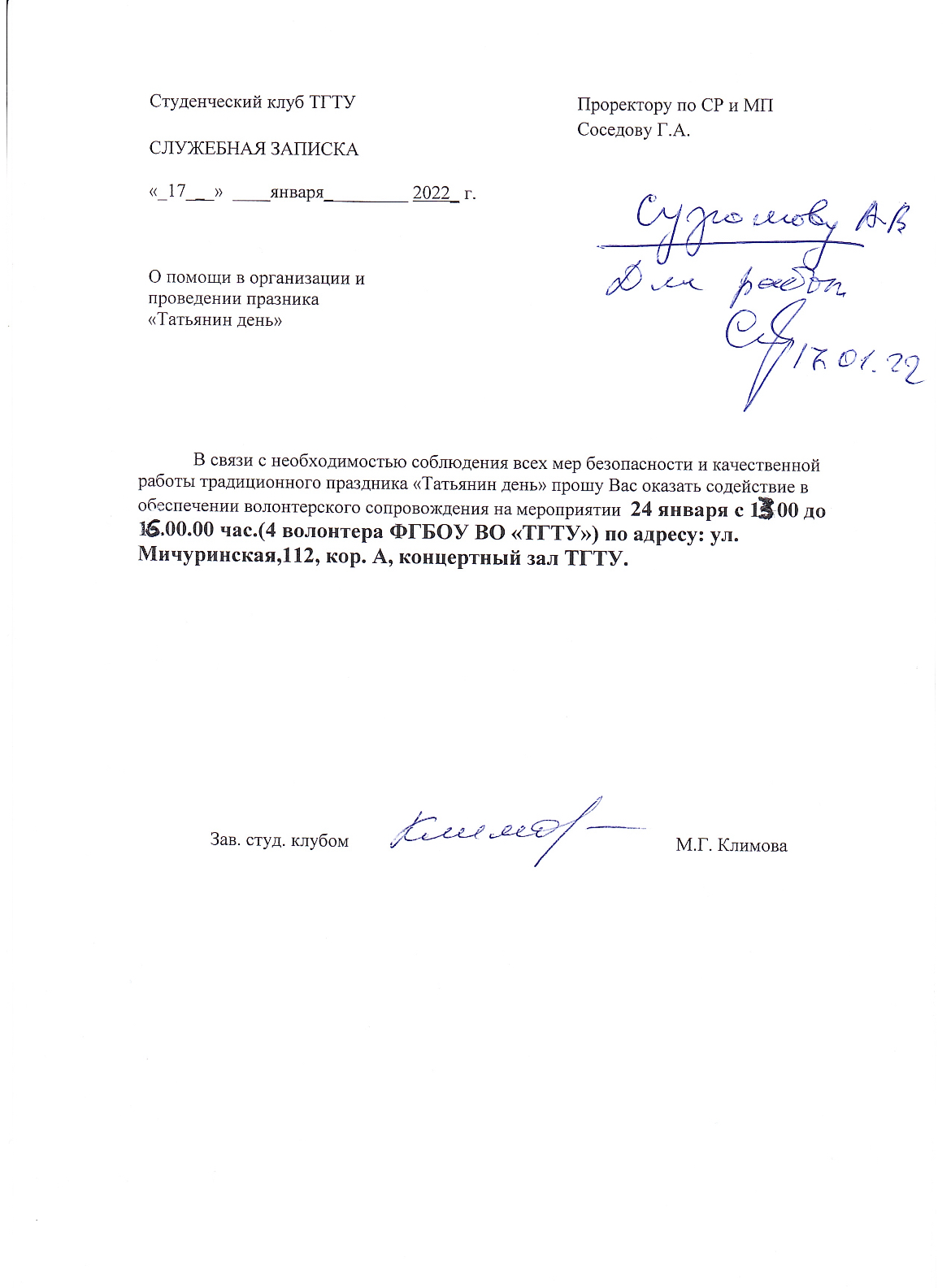 Помощь в организации праздника «Татьянин день» в Тамбовском государственном техническом университете