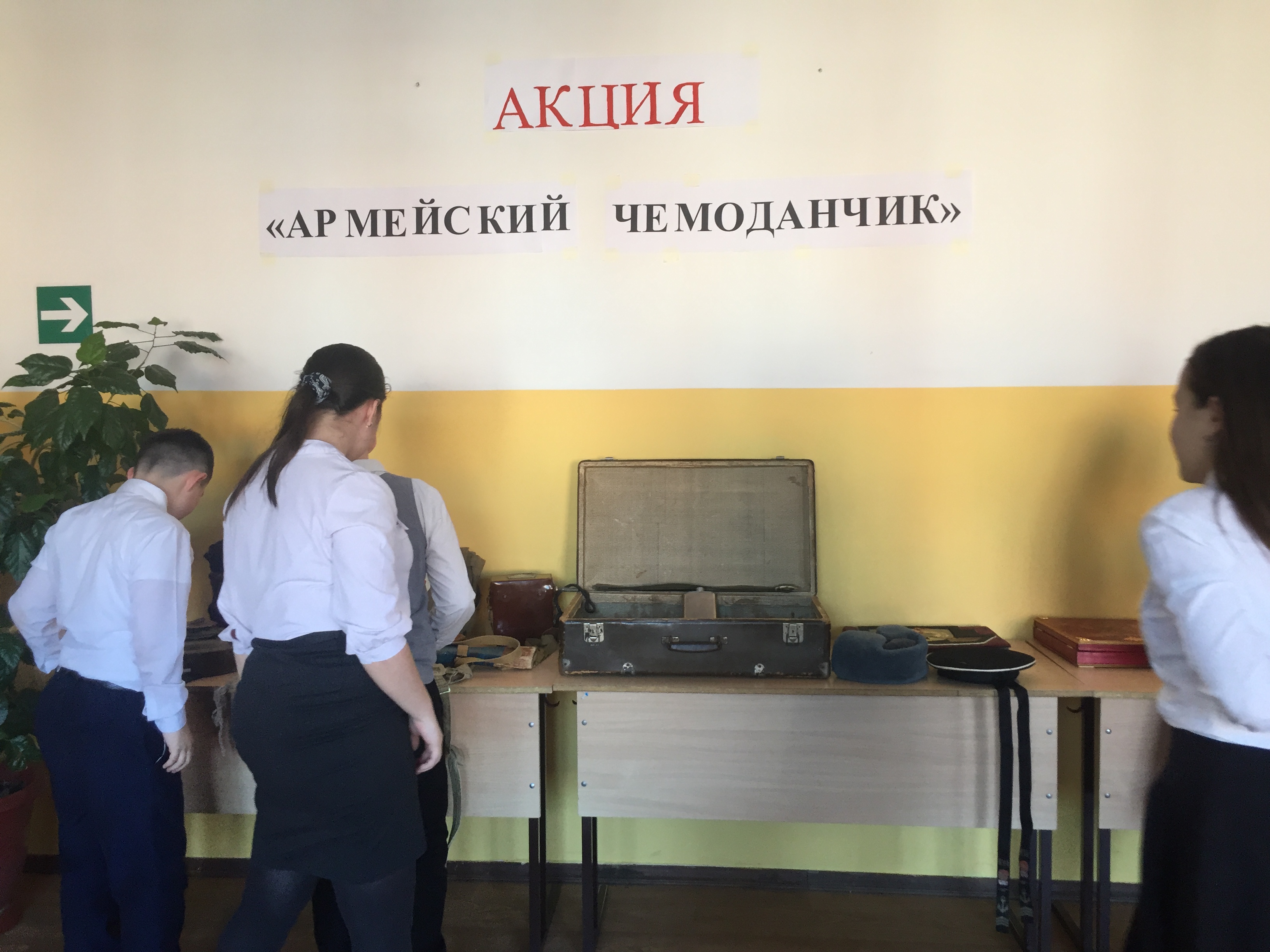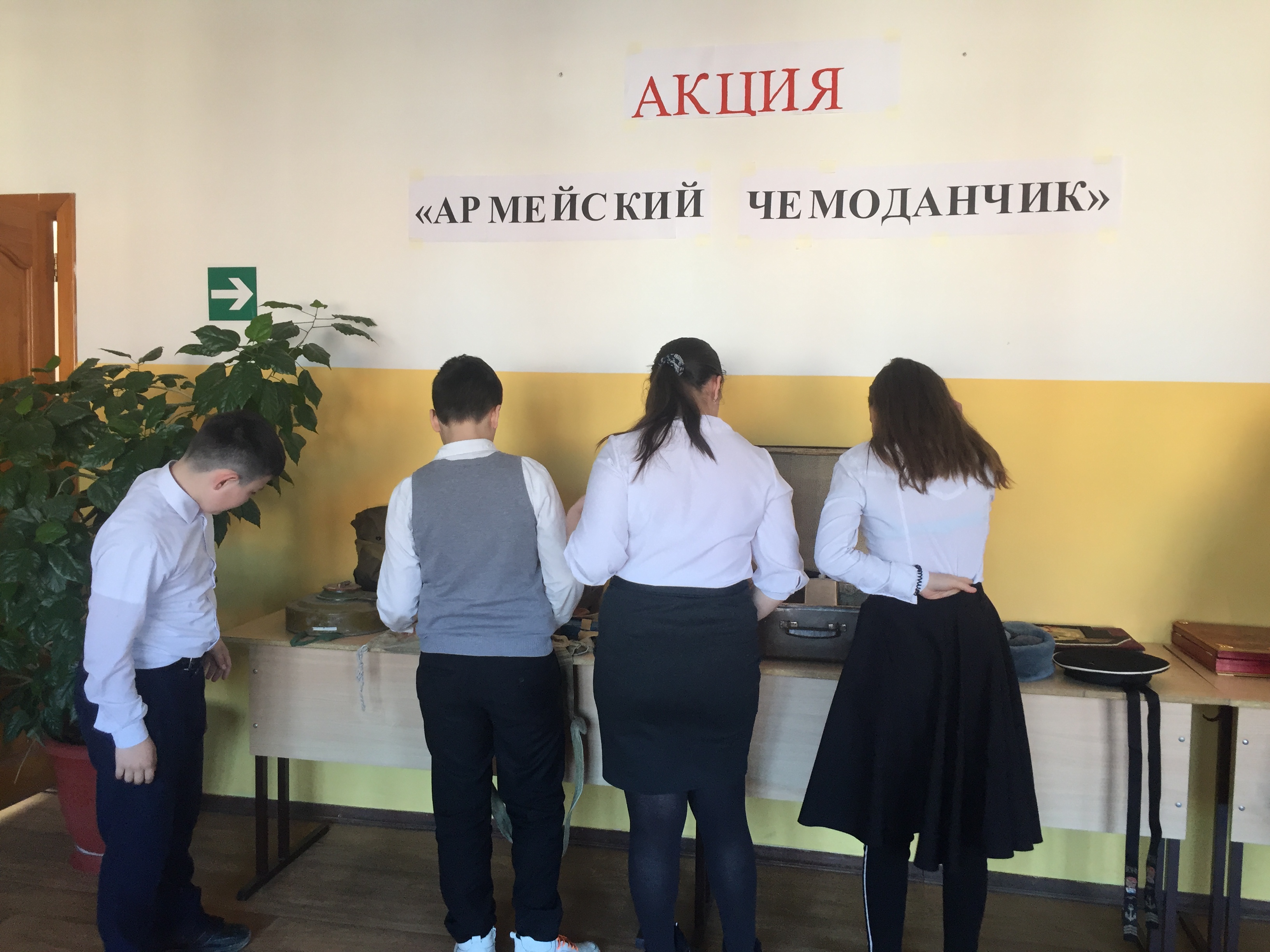 В преддверии праздника Дня защитника Отечества с 10 по 24 февраля в стартовала акция "Армейский чемоданчик" Цель акции : приобщение школьников к изучению традиций и истории защиты Отечества на примере своей семьи.