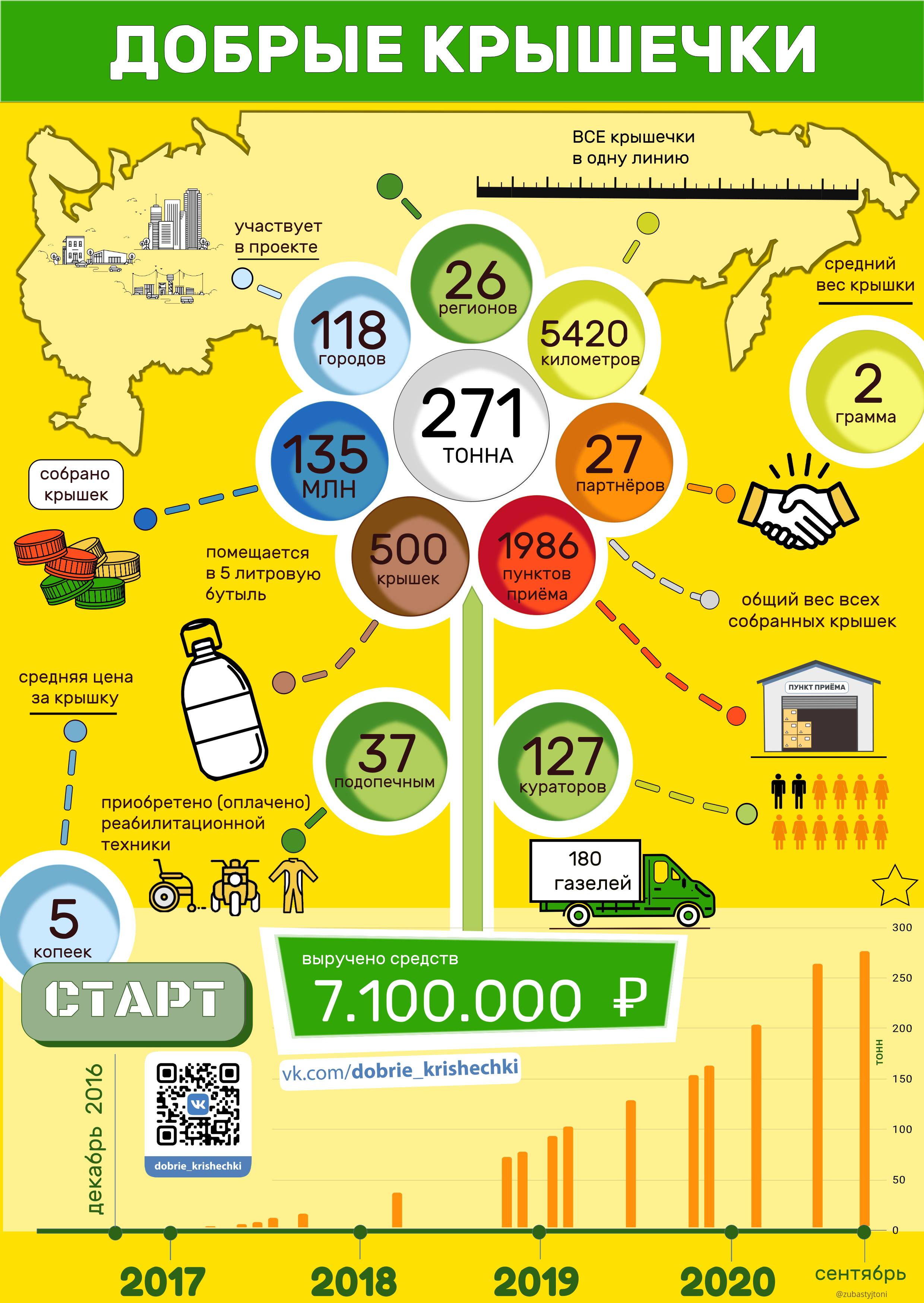 Добрые_крышечки - это социально-экологический проект по сбору пластиковых крышек, направленный на помощь детям с ограниченными возможностями из приёмных семей - подопечным благотворительного фонда "Волонтёры в помощь детям-сиротам"