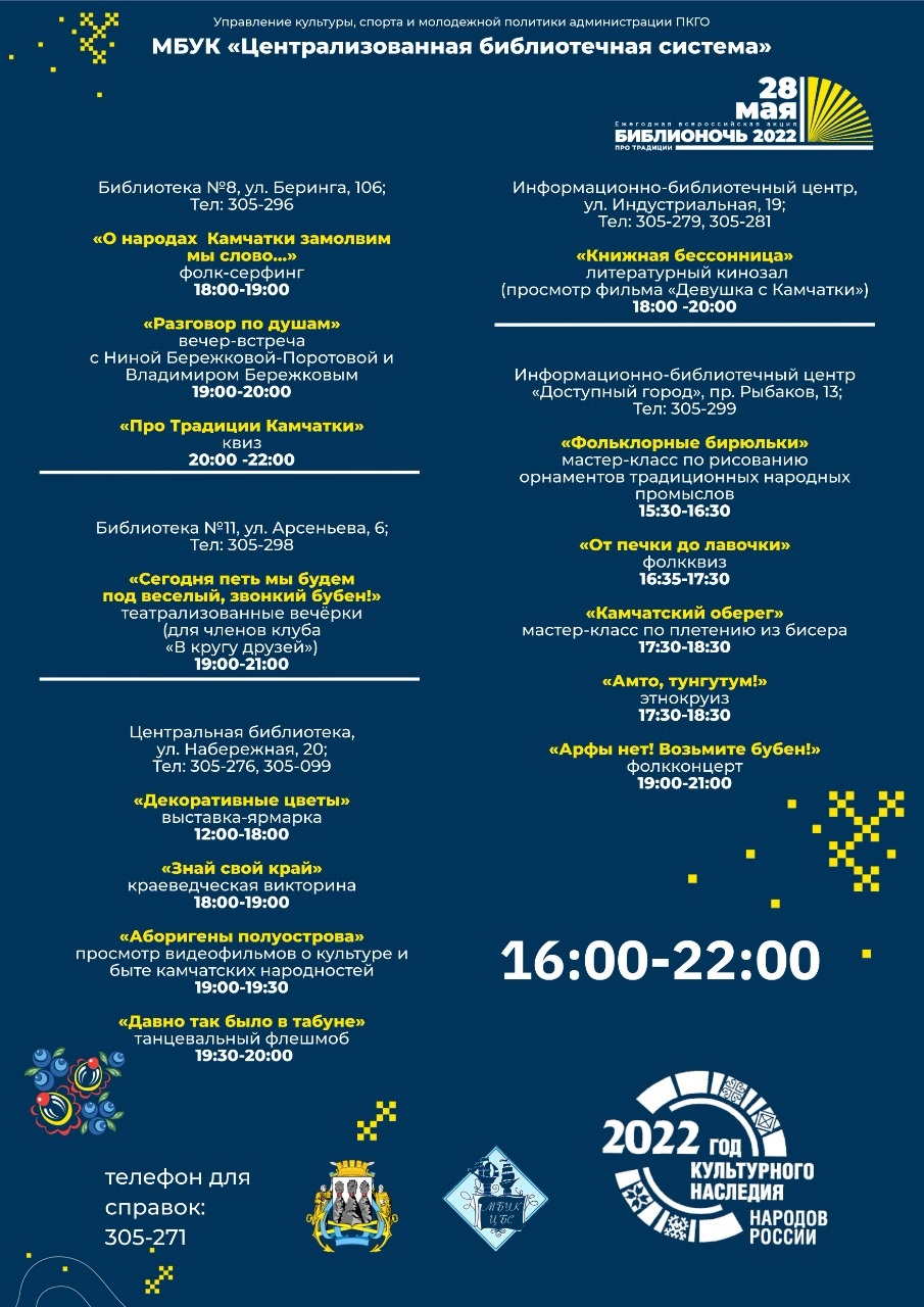 28 мая 2022 г. в МБУК «Центральная городская библиотека», по адресу г. Петропавловск-Камчатский, пр. Рыбаков, д.13, пройдёт концерт артистов волонтёров Камчатского колледжа искусств с программой "Арфы нет! Возьмите бубен!".