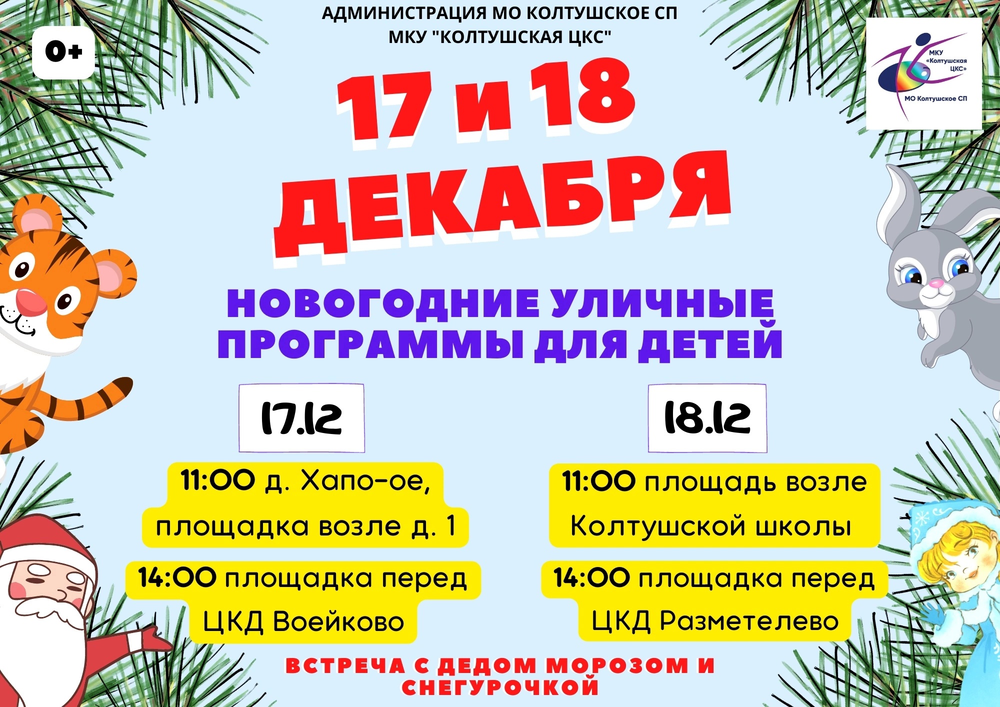 Организовываем уличные ёлки для детей в Колтушах. Приглашаем аниматоров и фотографов. На разных площадках в честь нового 2023 года проводим детские уличные игровые программы. Сценарии готовы. Аниматоров подготовим.