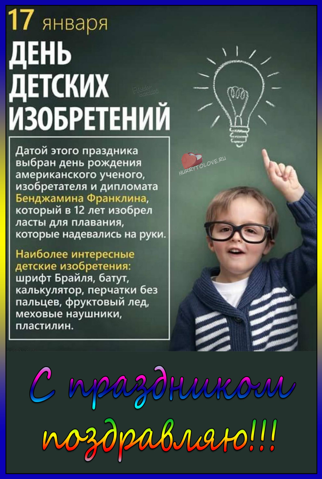 Ежегодно более 500 тысяч детей и подростков изобретают различные гаджеты и игры, создают и модифицируют роботов и технику. Все детские изобретения, несомненно, делают нашу жизнь удобнее и интереснее. И сегодня именно тот день, в который нужно порадоваться изобретательности юных гениев, оценить значимость их многочисленных изобретений и поощрить разносторонние детские таланты. Волонтерский отряд" Добро" проведет выставку изобретений новых работ.