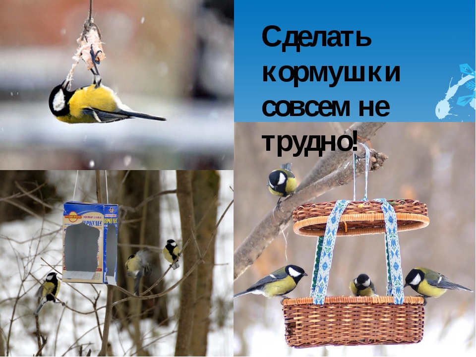 Зима — трудное время для зимующих птиц, особенно если она суровая и многоснежная. Голодная птица сильно страдает от холода. Нужно поддержать птиц зимой, сделать для них кормушки и не забывать подсыпать в них корм. Зимняя подкормка птиц — довольно старая традиция. Зимой даже лесные птицы начинают тянуться к человеческому жилищу. Голод заставляет на время забыть о естественной осторожности.