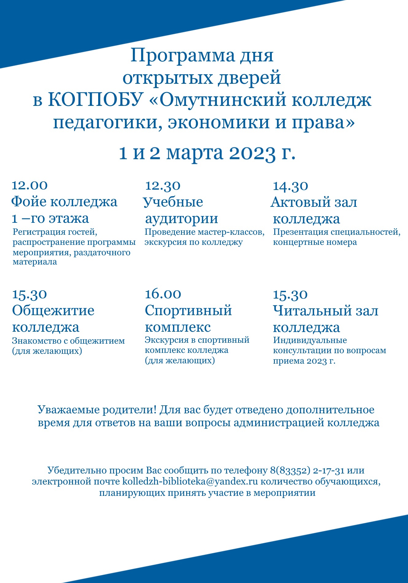 День открытых дверей для выпускников образовательных организаций г. Омутнинск, Омутнинского района и Кировской области.
