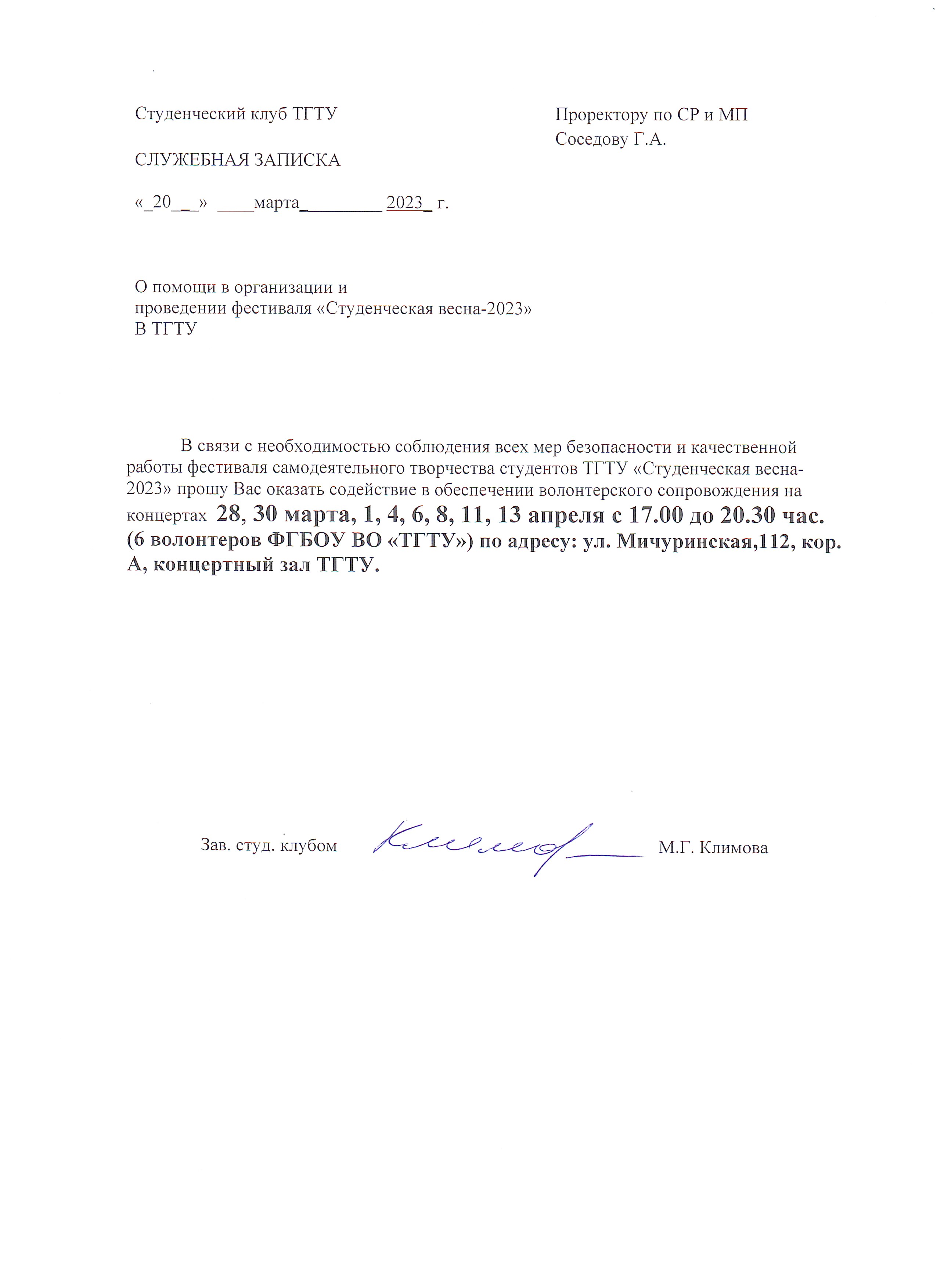 Помощь в организации Фестиваля самодеятельного творчества Студенческая весна 2023" студентов Института архитектуры, строительства и транспорта в Тамбовском государственном техническом университете