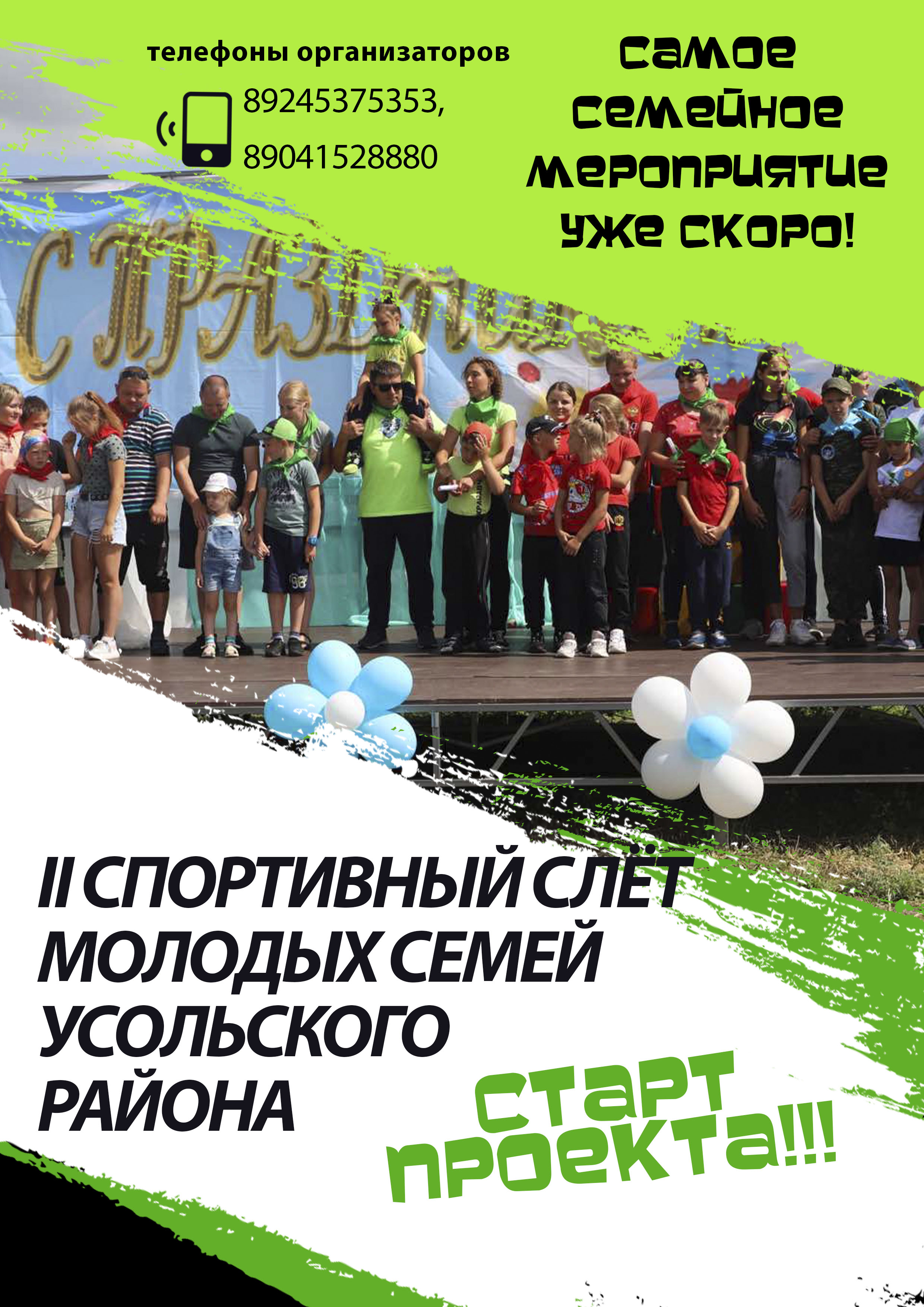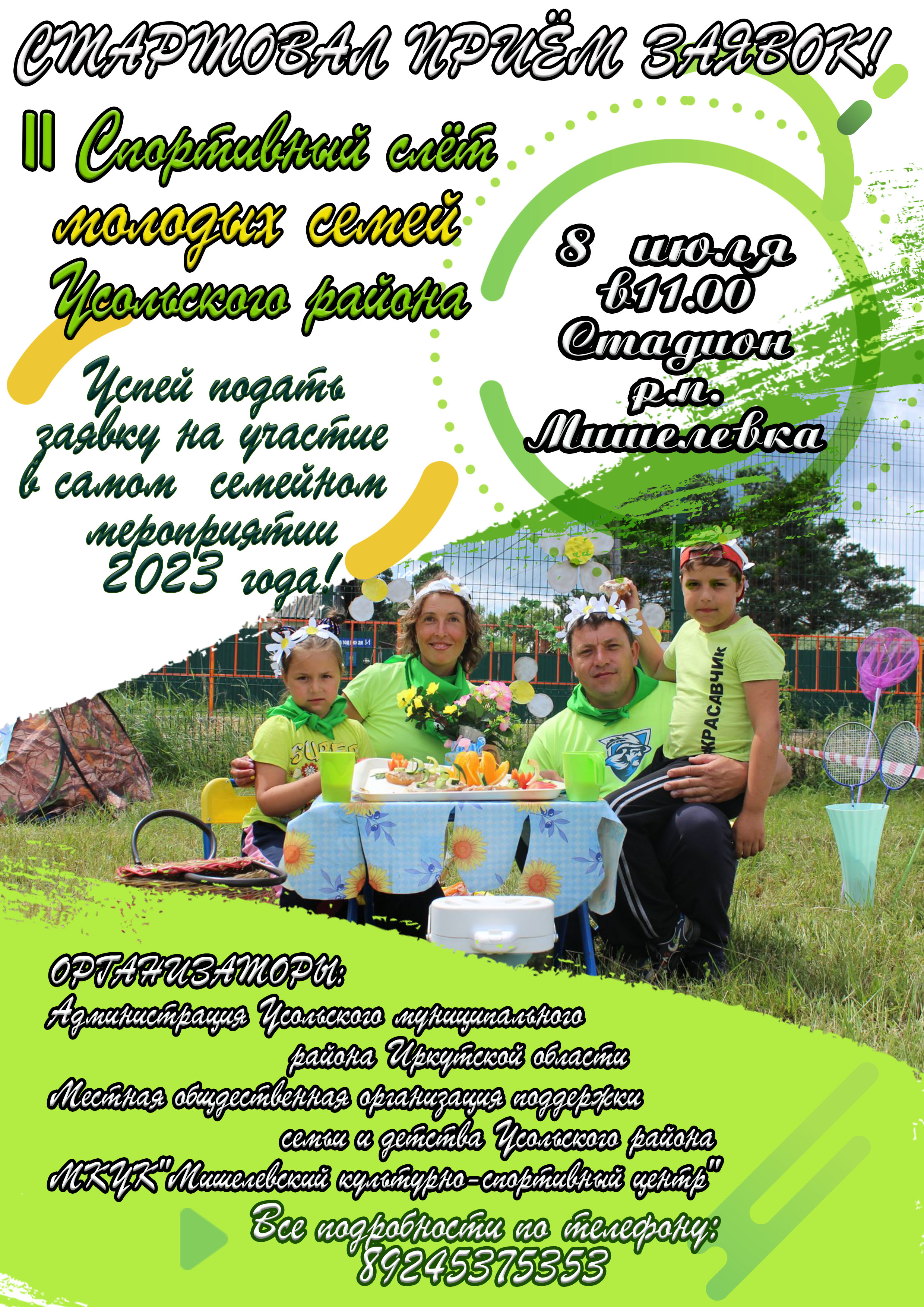 "II спортивный слет молодых семей Усольского района - 2023" состоится в рамках праздника Дня семьи, любви и верности на стадионе р.п. Мишелевка Усольского района. Впервые праздник День семьи, любви и верности стал отмечаться в России в 2008 году. В 2023 году станет 15 лет со дня основания праздника. А в 2022 году указом Президента от 28 июня 2022 года праздник установлен официально. В 2022 году членами Местной общественной организации поддержки семьи и детства Усольского района при поддержки при поддержке Администрации Усольского района и Администрации Мишелевского муниципального образования был проведен первый спортивный слет молодых семей, в котором приняли участие 9 молодых семей из 8 территорий Усольского района. Информацию о спортивном слете-2023 можно увидеть по ссылкам: https://vk.com/wall-214338222_20 https://www.youtube.com/watch?v=hCAUOGAnGX4 (с 0:44 сек) http://www.usolie-raion.ru/sobytiya/novost/15863-semya-otdykh-sport.html https://vk.com/wall-119378256_3267 https://usolie.info/news/obshchestvo/pervyy-sportivnyy-slyet-molodykh-semey-proshyel-v-usolskom-rayone.html По итогам слета и сбором обратной связи было принято решение ЗАКРЕПИТЬ это мероприятие на территории Мишелевского муниципального образования. В 2023 году мы решили расширить программу слета молодых семей, которая будет в себе содержать: - визитную карточку "Ваш выход,семья!", в которой все члены семьи смогут проявить свое творчество, способности, - семейную эстафету "Мы - семья и мы команда", состоящую из тимбилдинговых этапов, - конкурса блюд "из поколения в поколение", где семьи поделятся своими блюдами переходящими из поколения в поколение. Дополнить праздник детскими площадками с играми, аниматорами и шоу мыльных пузырей и завершить слет конкурсно - развлекательной программой с ярким финалом - шоу красок Холли. Проект направлен на сплочение семьи, пропаганду здорового образа жизни молодых семей и вовлечение молодых семей в полезную досуговую деятельность. Также слет будет способствовать выявлению талантливых детей и родителей, знакомству семей с разных уголков Усольского района и в будущем имеет свое развитие, расширение границ до межмуниципального и областного.