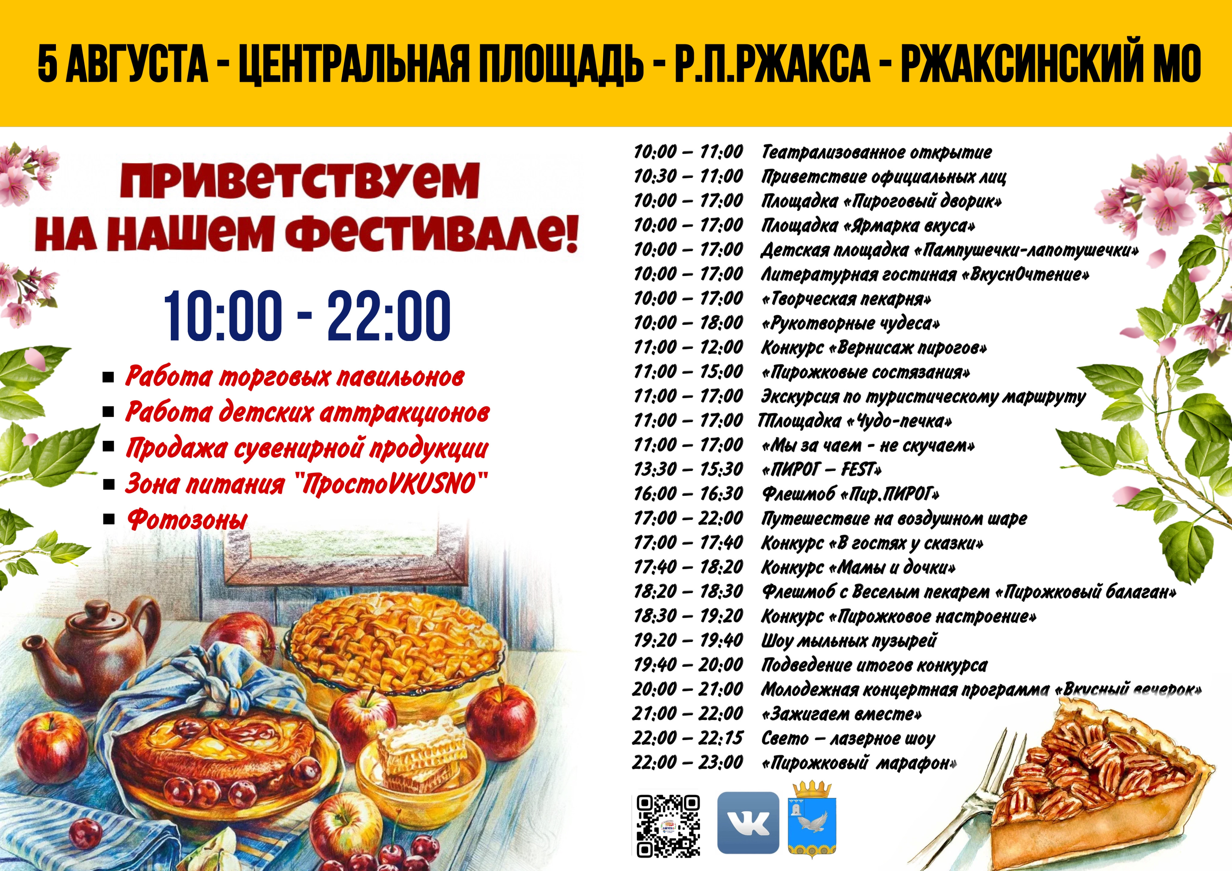 5 августа ждём всех на главном событии Ржаксинского муниципального округа, грандиозном летнем празднике - "Фестиваль Пирога".