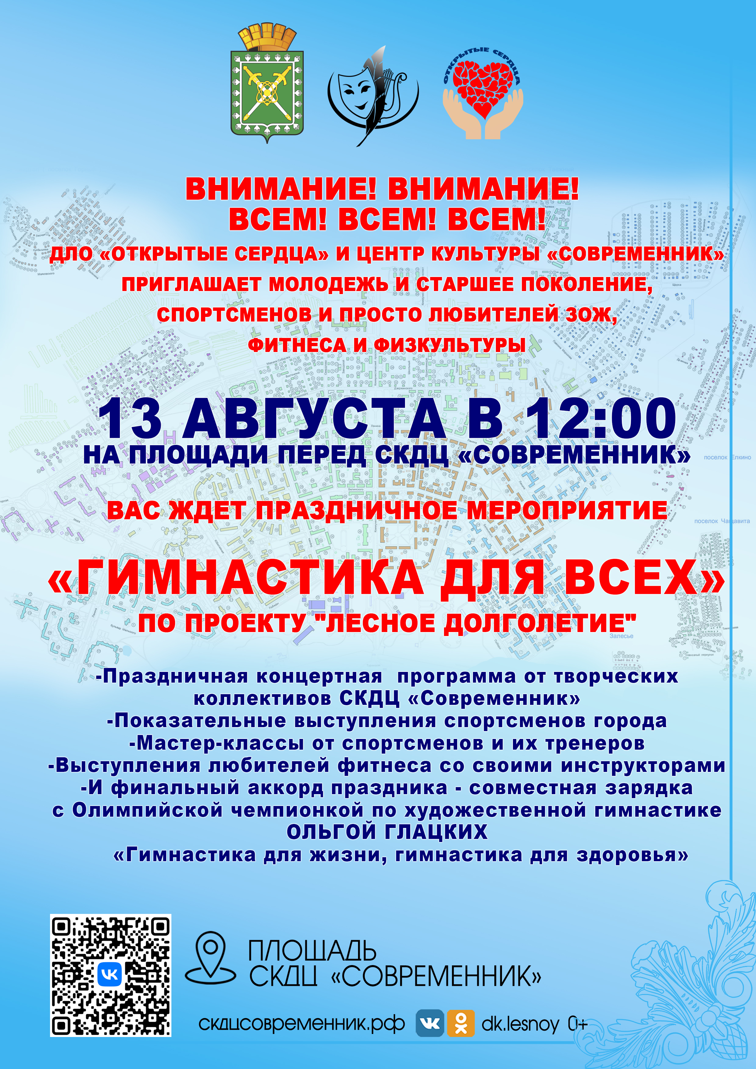 «ЛЕСНОЕ ДОЛГОЛЕТИЕ» состоится на открытом воздухе, на площади пред зданием СКДЦ "Современник". В программе: