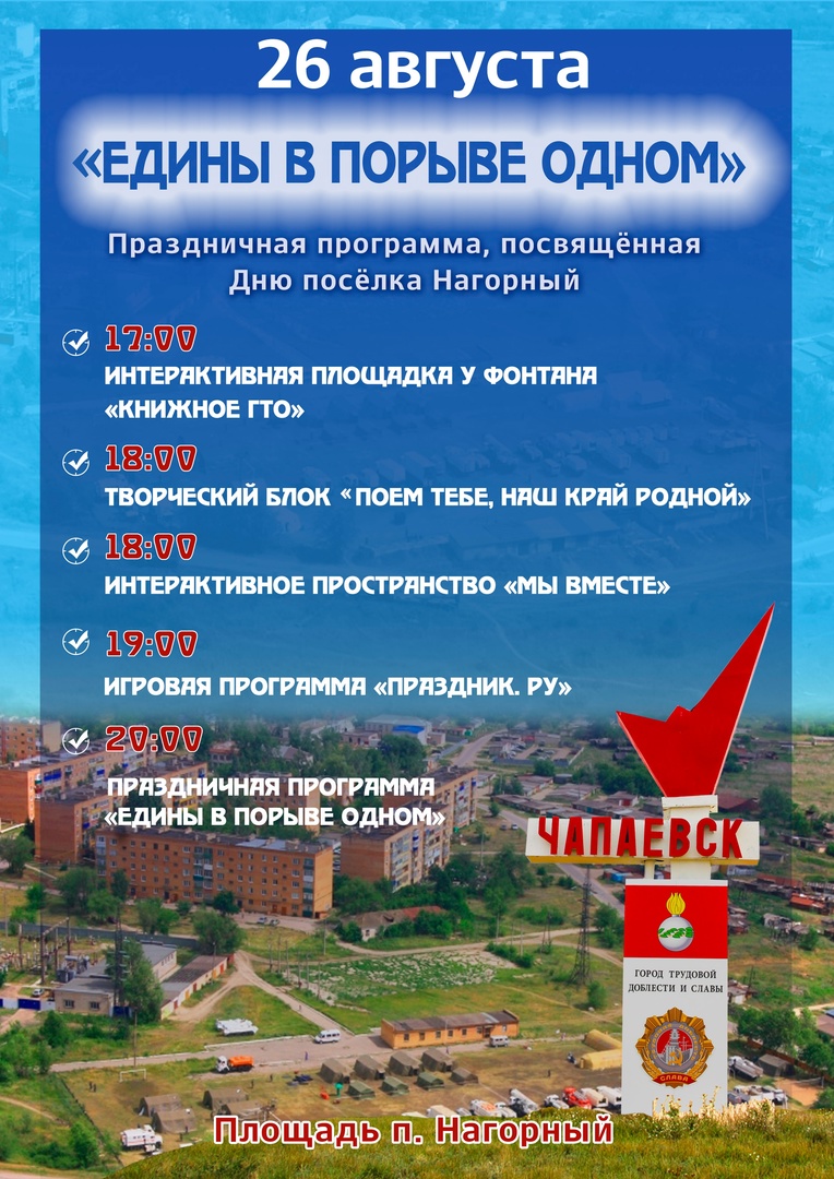 На площади поселка Нагорный, с 18 до 20 часов, для жителей и гостей нашего города будет организовано интерактивное пространство🌿«Мы вместе»🌿, приуроченное к празднования Дня поселка Нагорный.