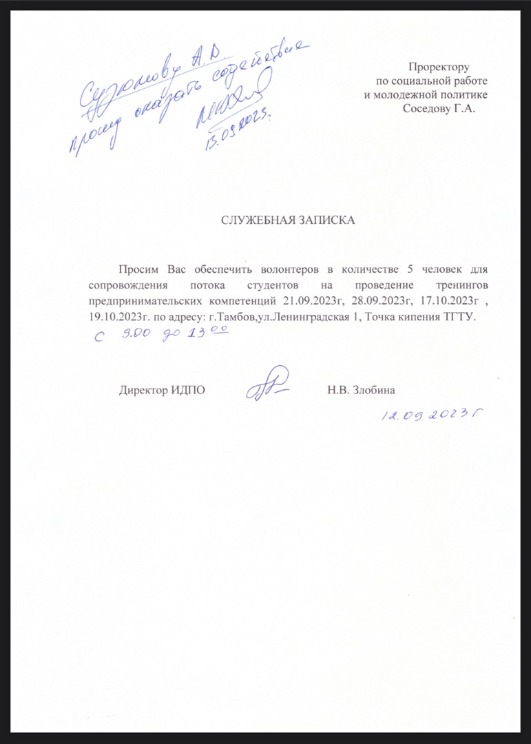 21.09.2023 с 9.00 до 14.00 в Точке кипения Тамбовского государственного технического университета ( корпус Л, ул. Ленинградская, 1) необходима помощь волонтёров в организации и проведении Платформы университетского технологи-