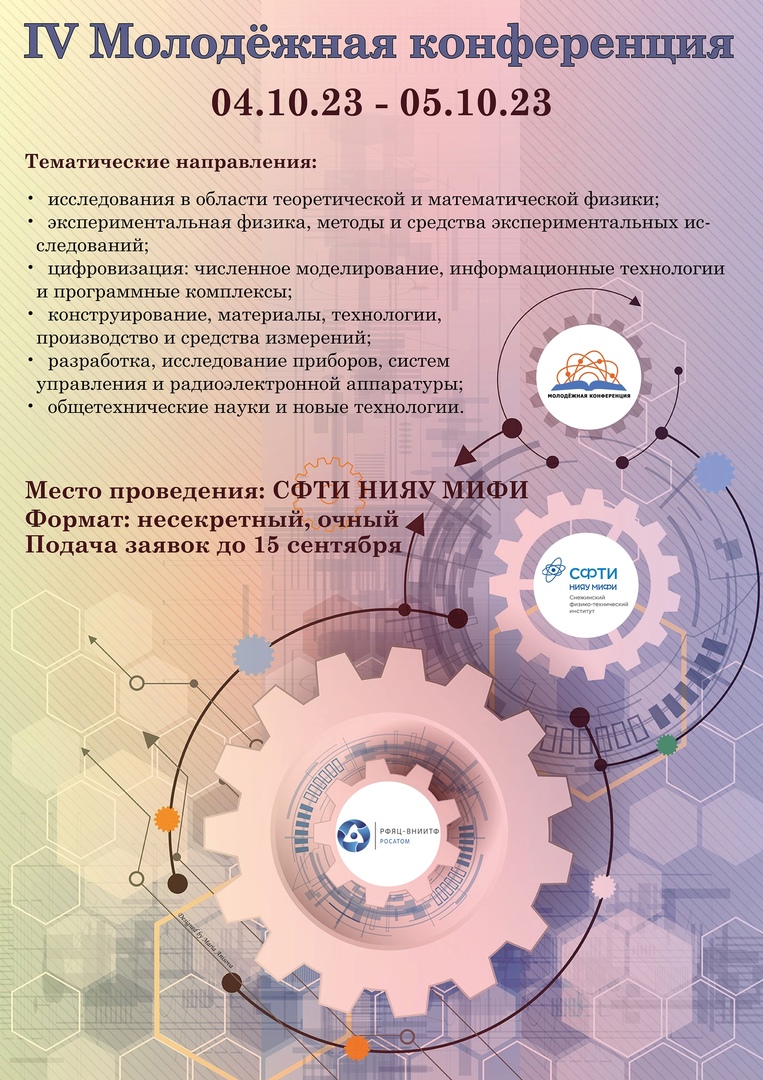 Молодежная конференция – площадка для коммуникации и обмена мнениями в научной и научно-технической сферах для молодых сотрудников подразделений предприятия, а так же различными предприятиями отрасли. Привлечение студентов/аспирантов МИФИ к научной деятельности и повышение привлекательности предприятии, как будущего работодателя по средством участия в самой конференции как докладчиков, так и слушателей, а так же в качестве волонтеров в помощи организации мероприятия. Популяризация науки и привлечение молодежи в научно-исследовательские работы. Презентация проектов и научных разработок молодых ученых предприятий и вузов, добившихся определенных результатов в исследовательской деятельности и в практической реализации. Привлечение внимания профессионального сообщества к тематике научной деятельности.