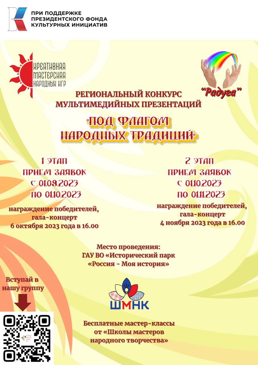 Гала-концерт "Под флагом народных традиций" 4 ноября в 16.00 ,посвященный Дню народного единства.Масштабное мероприятие с торжественным награждением победителей 2 этапа конкурса рекламных мультимедийных презентаций пройдет в Историческом парке "Россия-Моя история".В рамках проекта "Креативная мастерская Народных игр" при поддержке Президентского фонда культурных инициатив, пройдет "Круглый стол" с участием тим-лидеров молодежных организаций и общественных деятелей Волгограда и Волгоградской области".