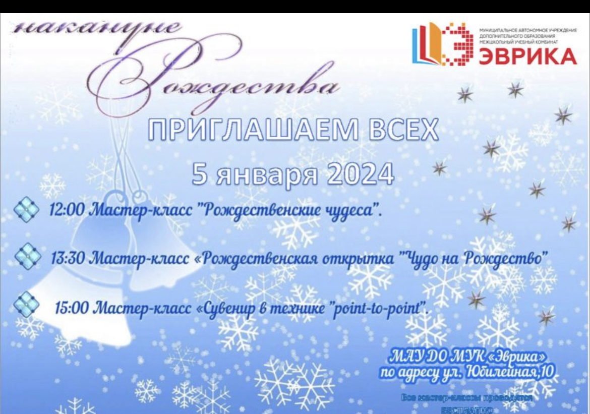 В канун Рождества волонтеры проведут мероприятие «Накануне Рождества», в рамках мероприятия,активисты проведут новогодние игры и викторины, также мастер-классы: «Рождественские чудеса», «Рождественская открытка».