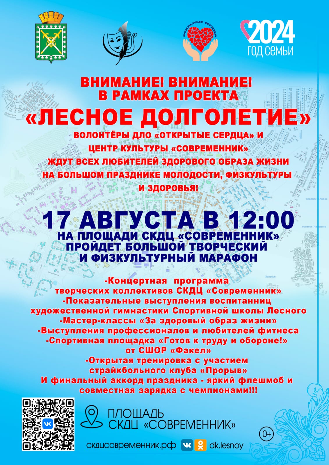 Ежегодное мероприятие по проекту волонтерского объединения "Открытые сердца" (МБУ "СКДЦ "Современник"), приуроченное ко Всероссийскому Дню физкультурника и посвященное Году семьи. Направлено на популяризацию здорового образа жизни, развитие физической культуры и спорта среди самых разных слоев населения ГО "Город Лесной"