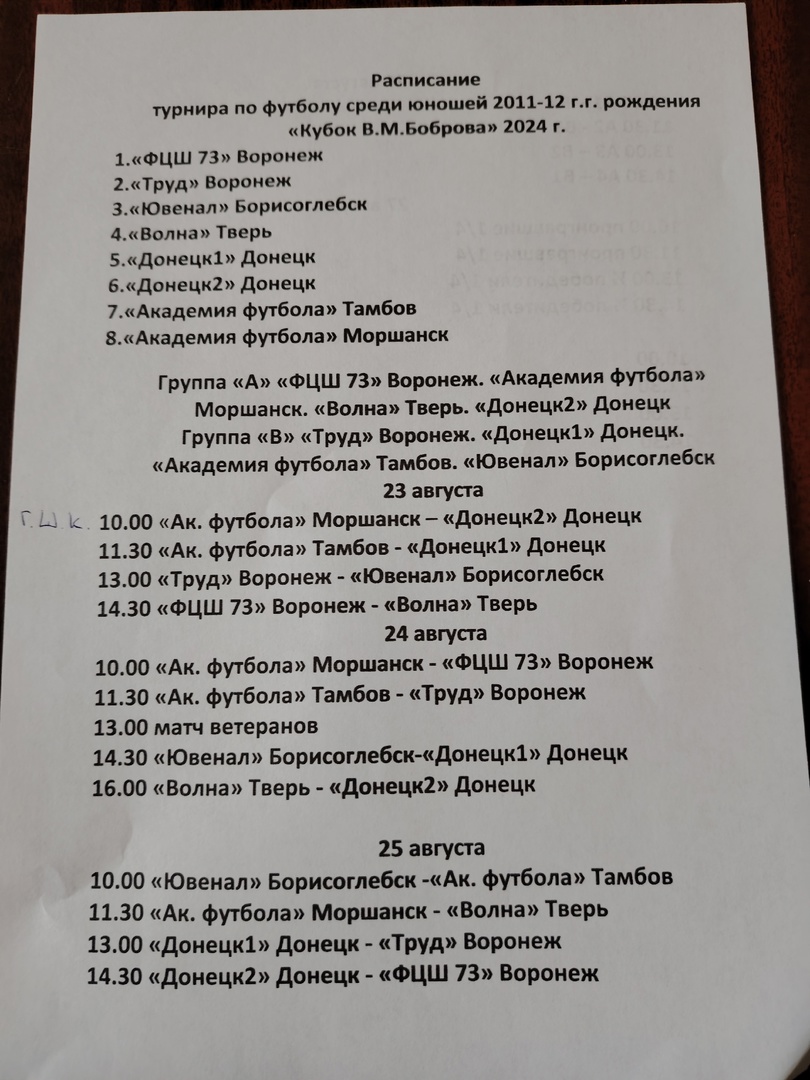 Участие ветеранов футбола 50+ в 21 традиционном спортивном мероприятии "Окружной детский турнир среди детей, посвященного памяти В.М. Боброва. Турнир проходит в период с 23 по 28 августа в г. Моршанске, в котором принимают участие дети из Донецка, Воронежа, Липецка, Тамбова и др. регионов. Участвуют команды ветеранов-наставников, "серебряных" волонтеров. Проводится при поддержке администрации г. Моршанска, благотворителей - Сенатора РФ М.В. Белоусова, Фонда "Опека", Фонда ""Преодоление, Региональной общественной организации ""Олимпийский Совет Тамбовской области" и др. 10 команд, из которых 8 детских и около 180 участников.