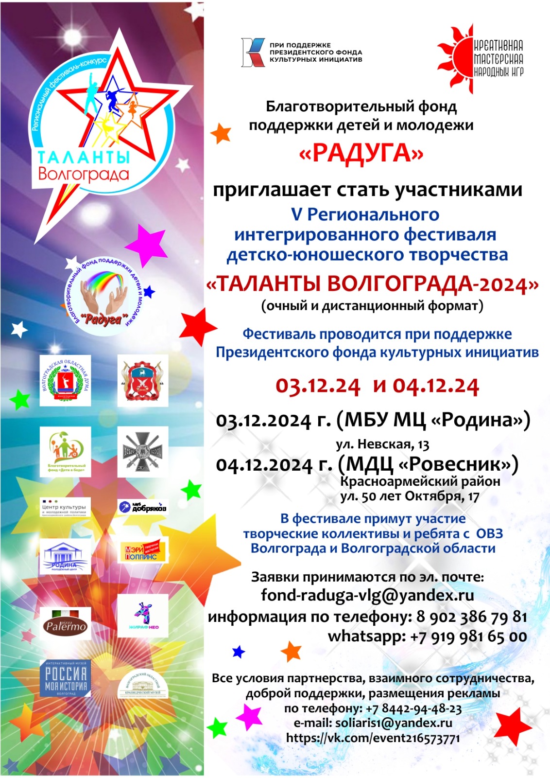 Заявки принимаются по эл. почте : fond-raduga-vlg@yandex.ru