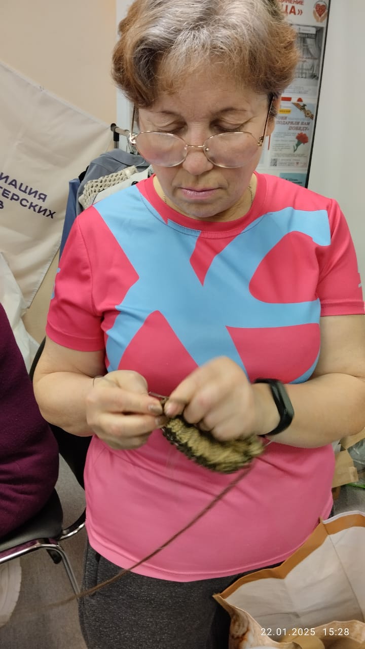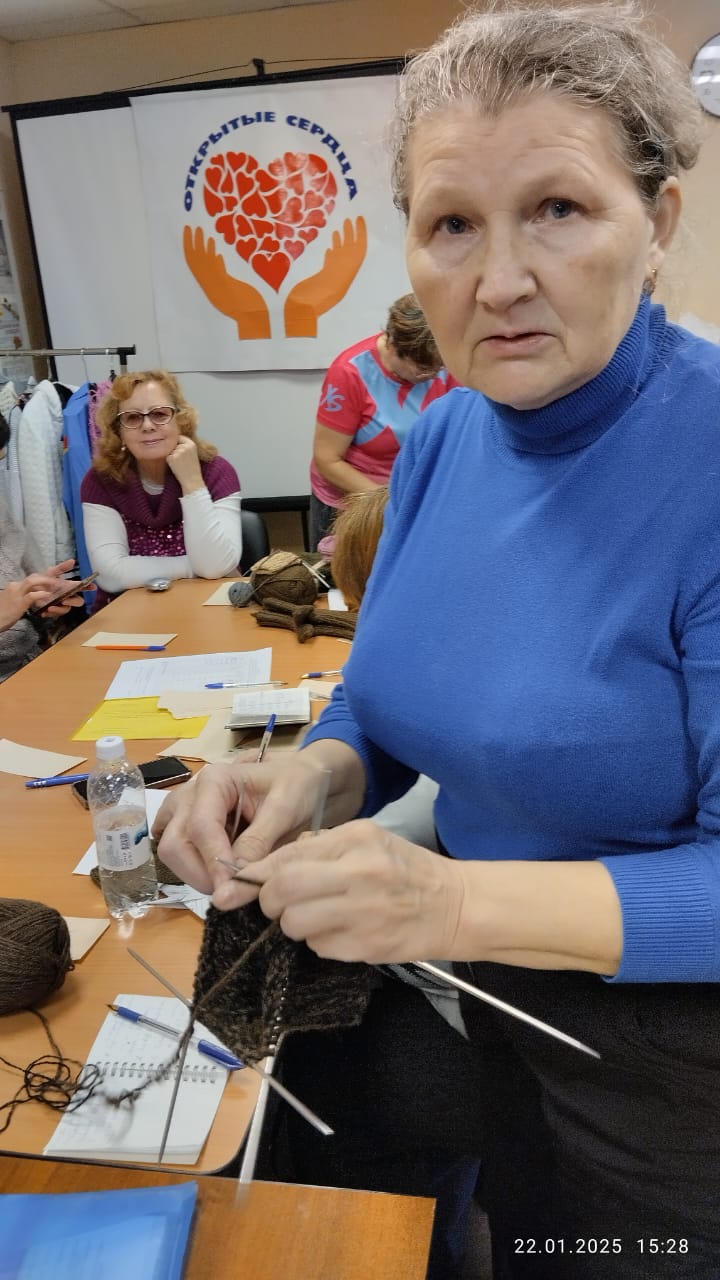 Проведение мастер -класса по вязанию трехпалых варежек волонтерами ДЛО "Открытые сердца" в помещении клуба (кабинет № 043) МБУ "СКДЦ "Современник". Проработка вопросов на примере правильных вариантов подбора пряжи и техники вязания с помощью ведущих мастер-класса. На мастер-класс приглашены жители города из числа старшего поколения и молодежи.