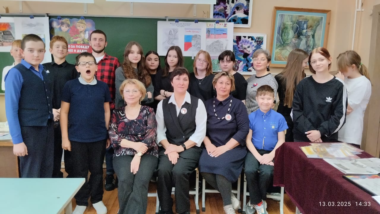 Встреча волонтеров объединения "Открытые сердца" с учащимися 6-ых классов МБОУ СОШ №67, посвященная 80 -летию Великой победы и памятной дате в истории Великой Отечественной войне - созданию Уральского добровольческого танкового корпуса