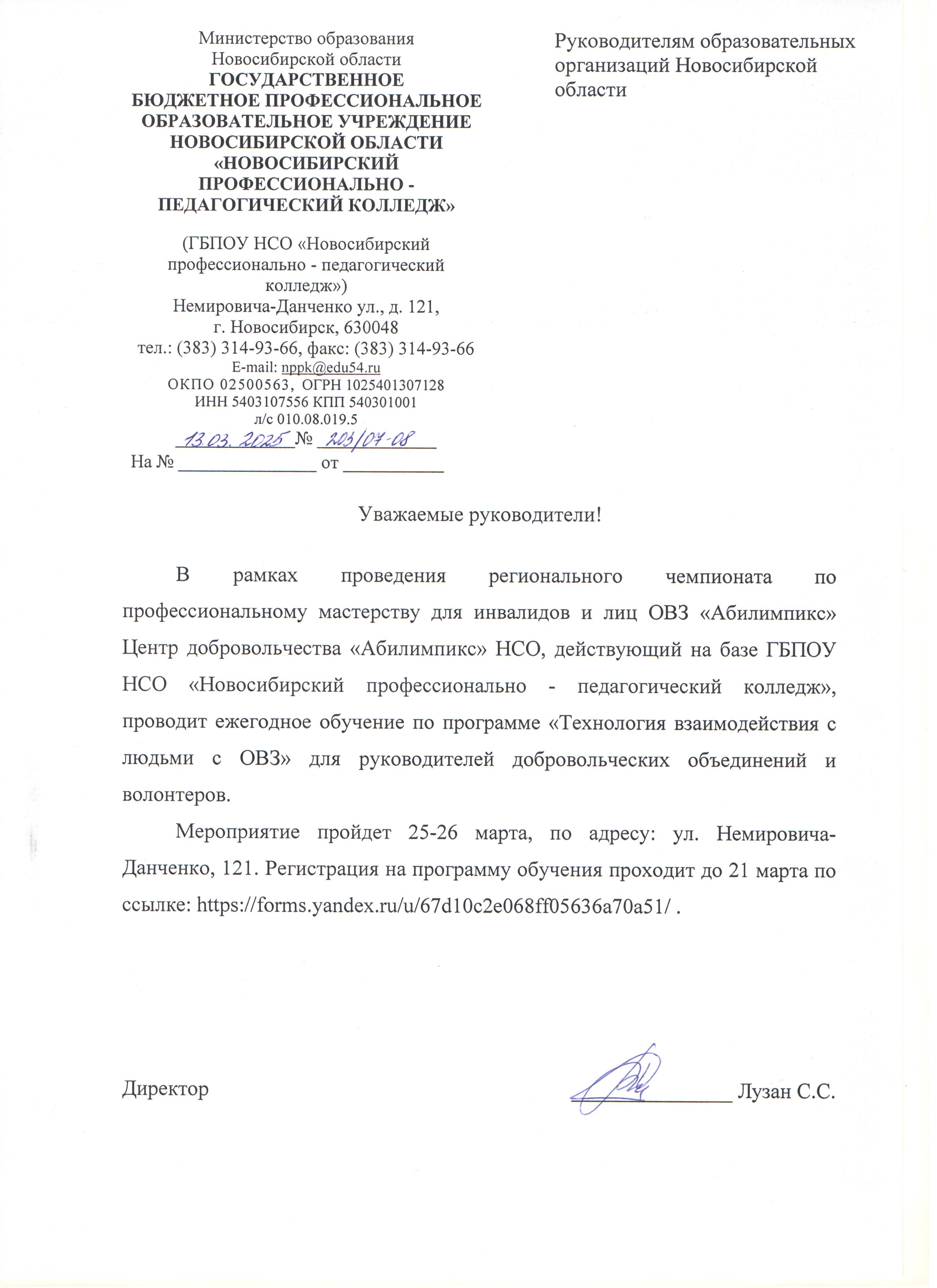 В рамках проведения регионального чемпионата по профессиональному мастерству для инвалидов и лиц ОВЗ «Абилимпикс» Центр добровольчества «Абилимпикс» НСО, действующий на базе ГБПОУ НСО «Новосибирский профессионально - педагогический колледж», проводит ежегодное обучение по программе «Технология взаимодействия с людьми с ОВЗ» для руководителей добровольческих объединений и волонтеров. Обучение пройдет согласно графика, по адресу: ул. Немировича-Данченко, 121.