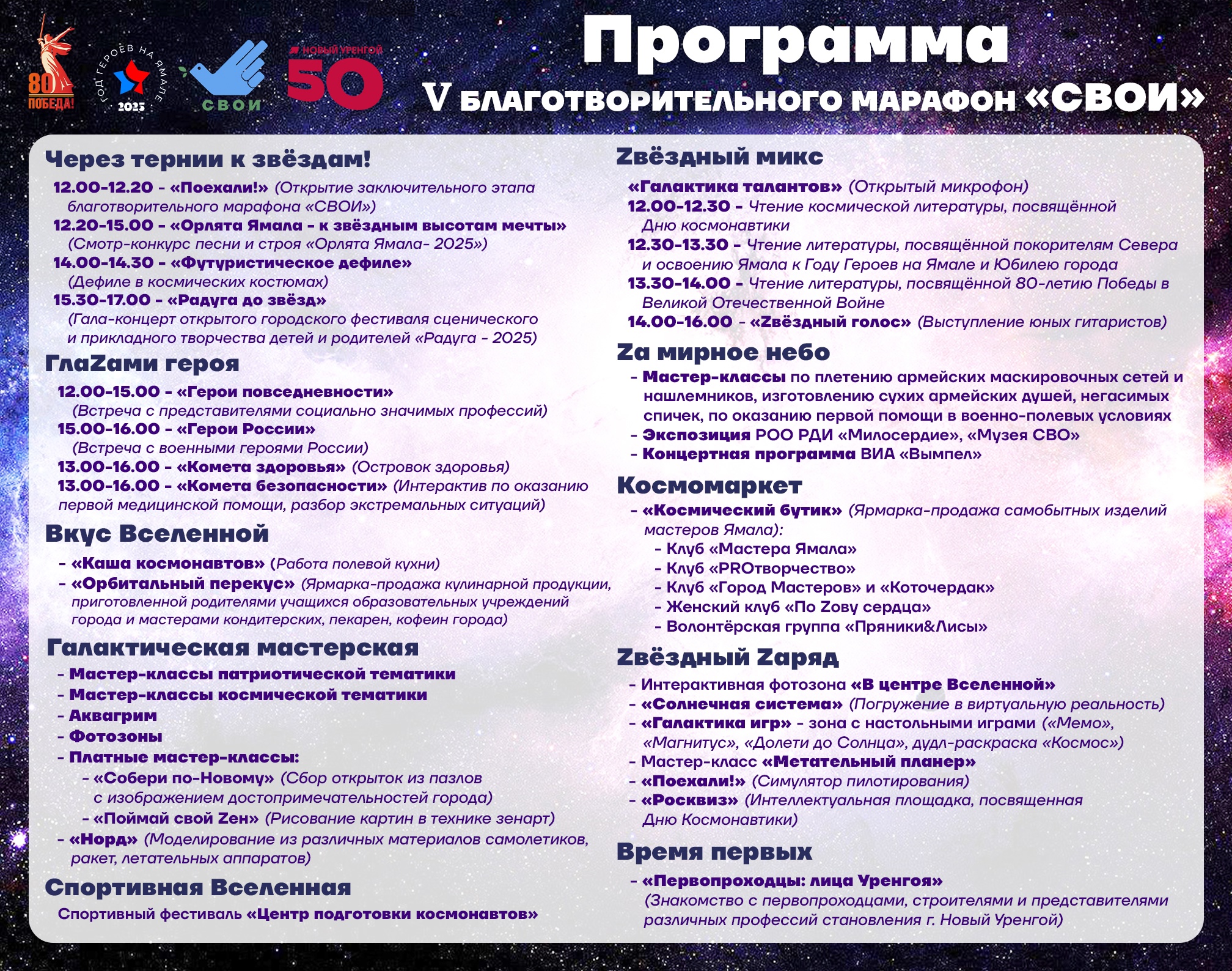Оказание помощи в проведении мастер -классов во время Благотворительного марафона "«СВОИ». Приглашаем присоединиться всех неравнодушных жителей и волонтеров города Новый Уренгой к участию в марафоне, организатором которого является МБОУ ДО ГДТ "Академия талантов". Марафон пройдёт 12.04.2025.