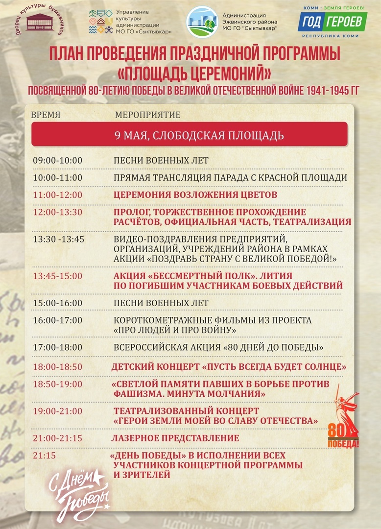 Праздничные мероприяти ко Дню Победы в Великой Отечественной войны в Эжвинском районе города Сыктывкара: