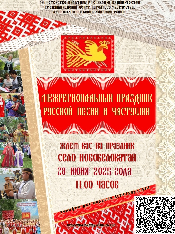С 26 июня по 28 июня 2025 года в Белокатайском районе пройдёт XVIII Межрегиональный Праздник русской песни и частушки.