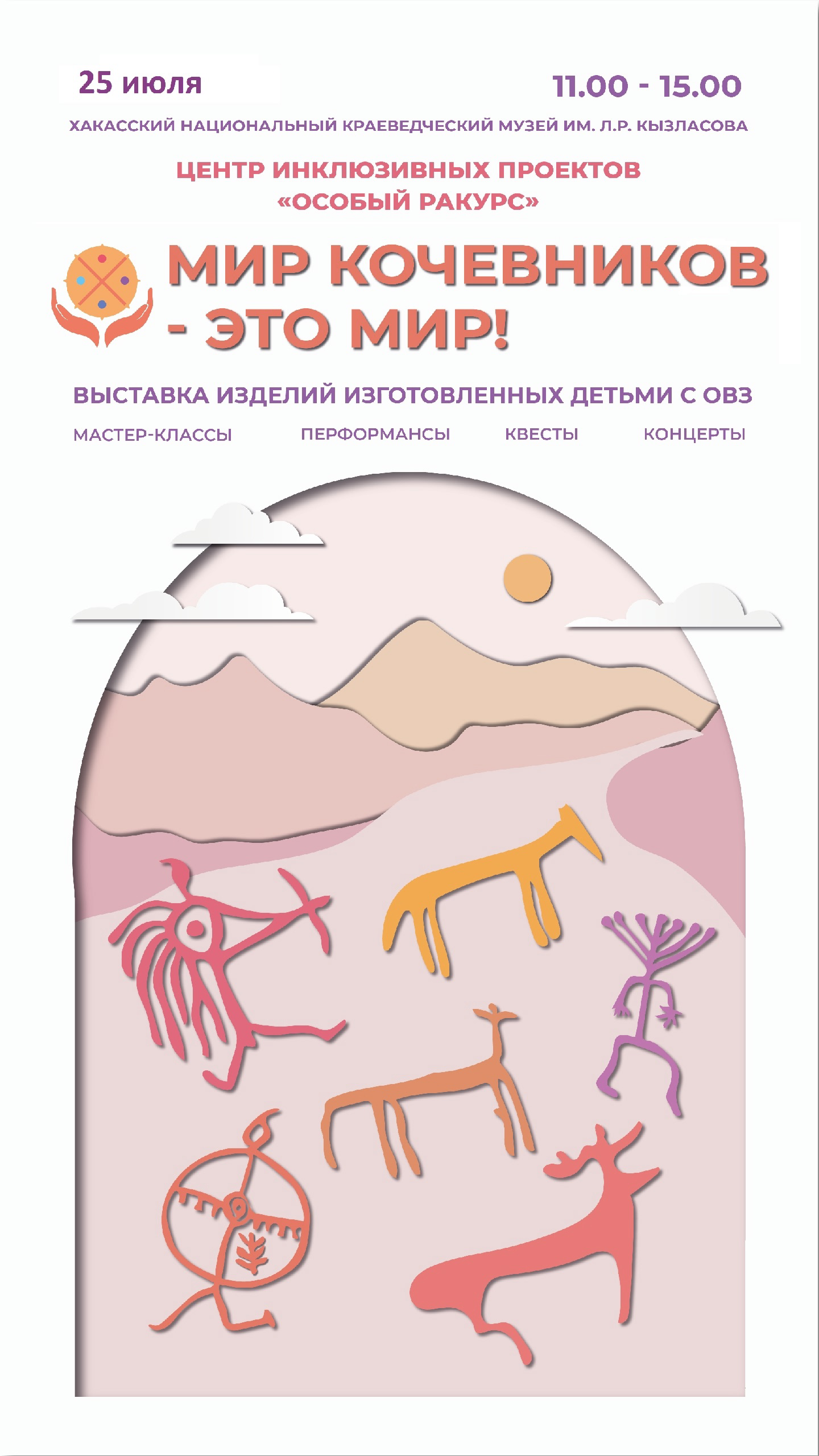 25 июля 2025 года в Хакасском национальном краеведческом музее имени Л. Р. Кызласова в рамках проекта тур-квест «Сердце Сибири глазами особых детей» при поддержке Фонда президентских грантов состоится очередное доброе событие – республиканский инклюзивный фестиваль «Мир кочевника – это МИР!»