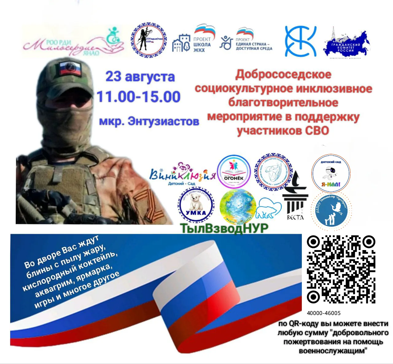 Благотворительное добрососедское инклюзивное социокультурное мероприятие в рамках проекта #МилосердиеДонбассу проводится с целью привлечения горожан к помощи госпиталям и военнослужащим, находящихся в зоне СВО.