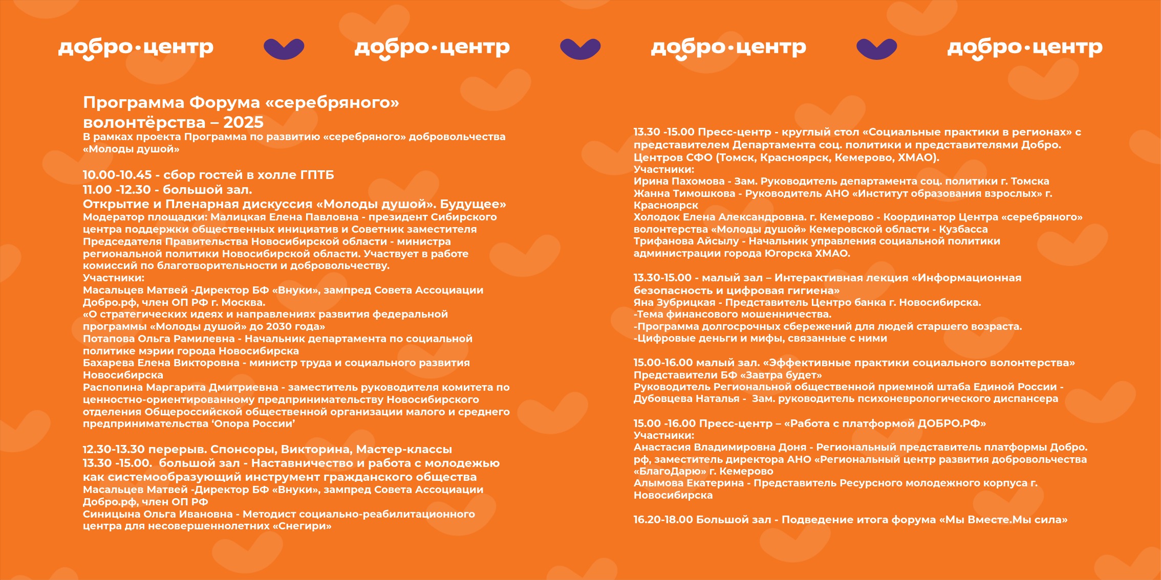 Новосибирск обладает высоким потенциалом для успешной организации подобного форума благодаря развитой социальной сфере города, активному участию общественности в благотворительных акциях и высокой заинтересованности департамента по социальной политике мэрии города Новосибирска в поддержке добровольческого движения среди пожилых граждан.