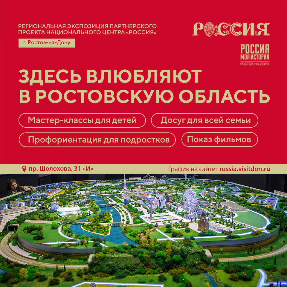 Региональная экспозиция партнёрского проекта национального центра "Россия" - продолжение выставки "Россия" в г. Ростов-на-Дону, проходившей в 2023-2024 гг. в г. Москва на ВДНХ. Сайт Russia.visitdon.ru