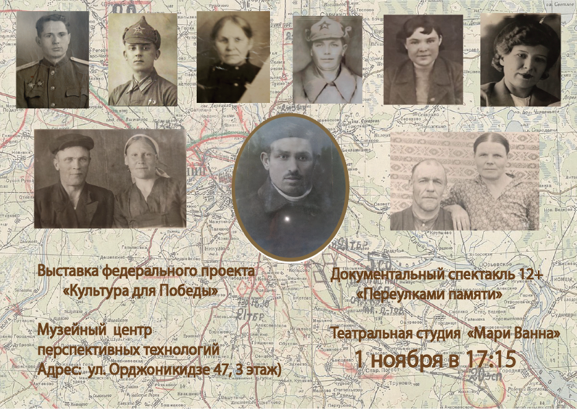 В рамках проекта Мы покажем Документальный спектакль «Переулками памяти», в который войдут семейные истории-воспоминания от первого лица о событиях ВОВ.