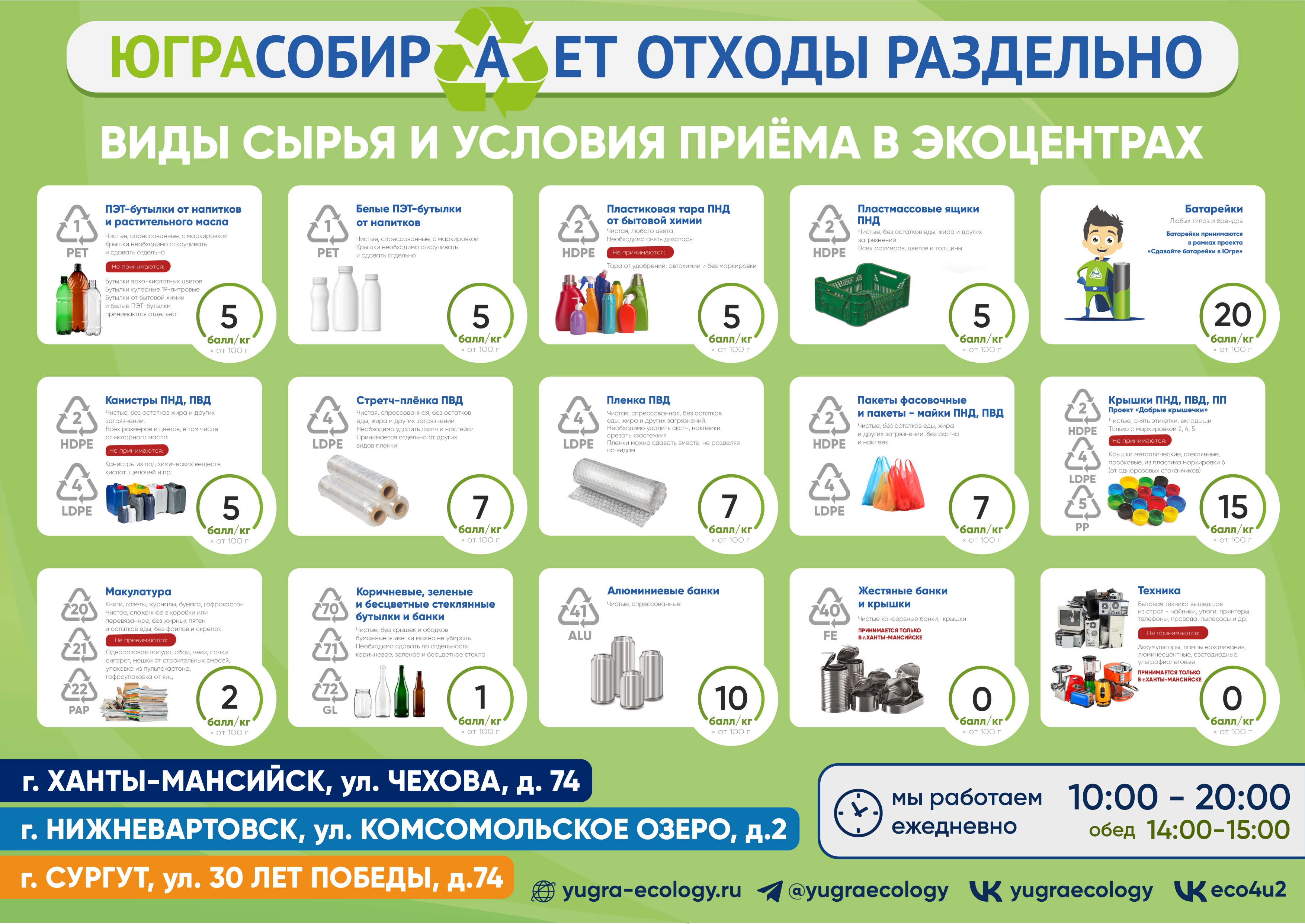 Раздельный сбор отходов в Югре набирает популярность, поэтому экоцентрам «Югра Собирает» приходится засучить рукава и ещё активнее принимать вторсырье от населения. Операторы в экоцентре настоящие пчёлки, которые ежедневно принимают, взвешивают, относят на склад сотни килограммов вторсырья и они всегда готовы рассказать о раздельном сборе.