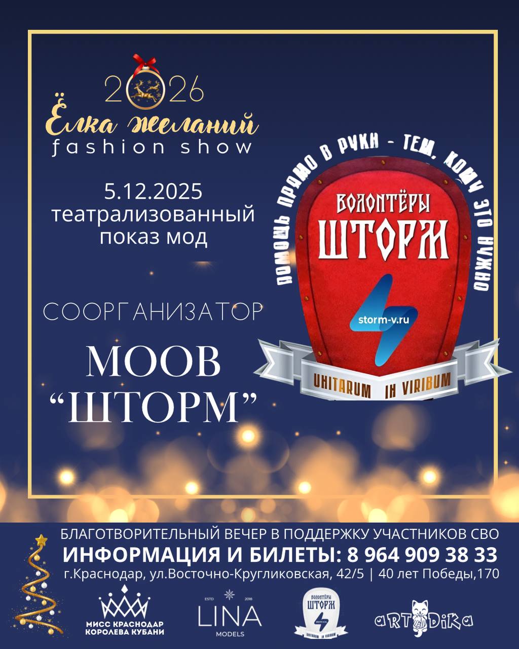 5 декабря 2025 года в Краснодаре пройдет масштабное благотворительное событие – театрализованный показ мод «Елка желаний». Мероприятие направлено на сбор средств в поддержку участников специальной военной операции.