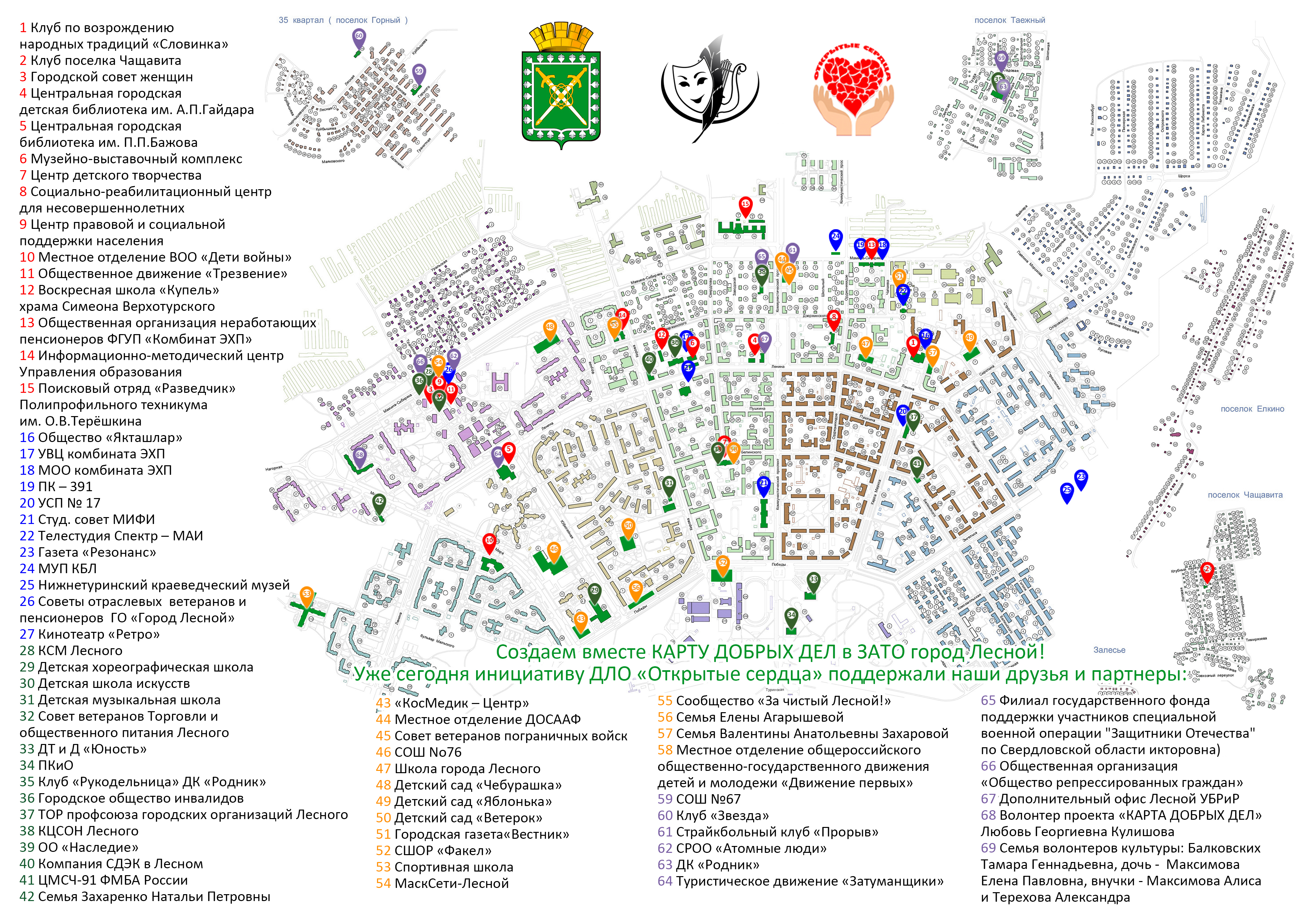 Встреча "Карта добрых дел"в действии" с учащимися Школы города Лесного в Международный день волонтера. Волонтеры Добровольного любительского объединения "Открытые сердца" проведут встречу в актовом зале школы с учащимися среднего звена, направленную на популяризацию проекта "КАРТА ДОБРЫХ ДЕЛ" и добровольчество в целом. Также в ходе встречи будут продемонстрированы изделия, которые волонтеры изготавливают собственными руками для защитников в зоне СВО.