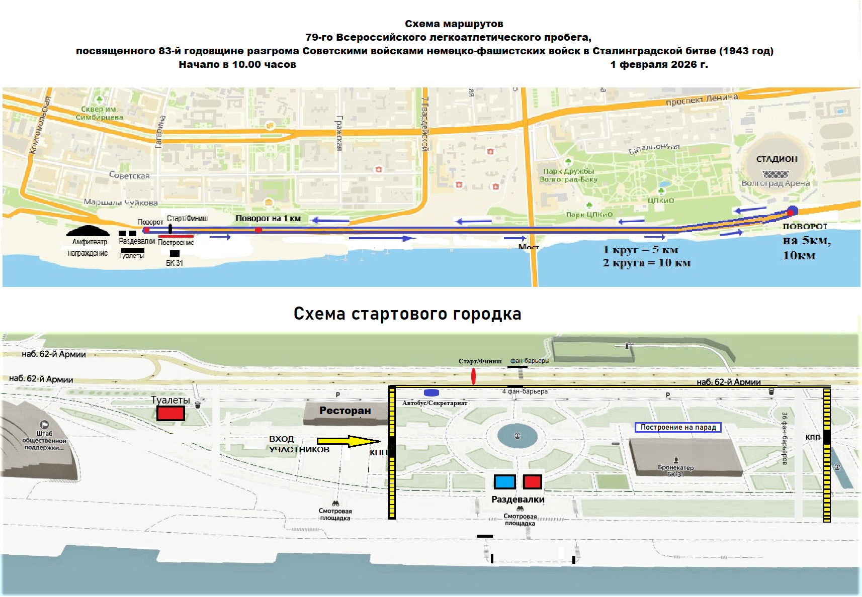 1 февраля 2026г. в Волгограде на территории нижней террасы набережной им. 62-й Армии состоится 79-й Всероссийский легкоатлетический пробег, посвященный 83-й годовщине разгрома советскими войсками немецко-фашистских войск в Сталинградской битве (1943 год).