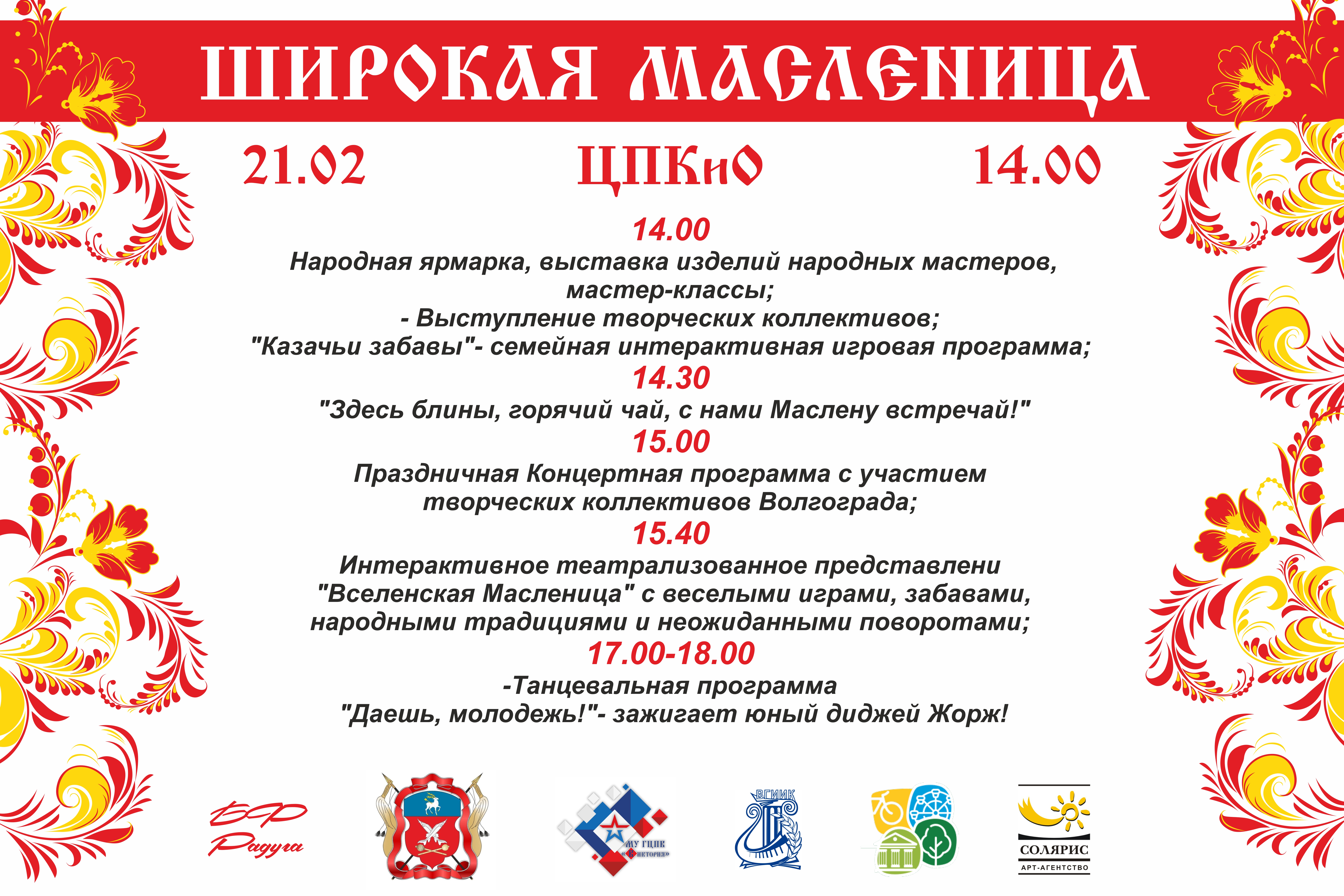 Приглашаем в Центральный парк культуры и отдыха Волгограда на Широкую Масленицу 21 февраля начало 14.00