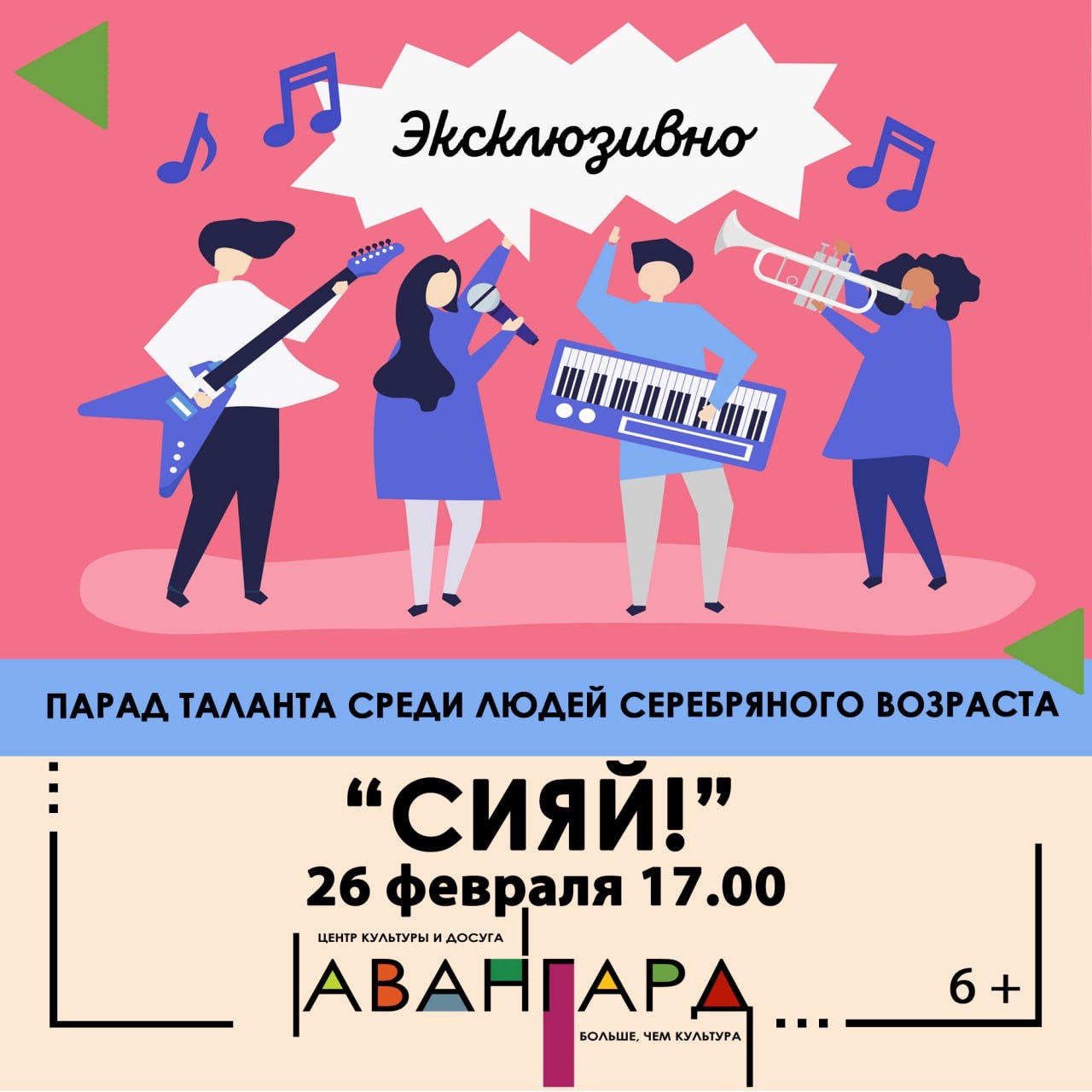 Творческий проект «Шоу-программа «Парад таланта «Сияй» будет реализован путем выявления, развития и предоставления возможности для демонстрации широкой публике творческих способностей жителей Кировского района старше 55 лет. Итоговое мероприятие проекта – гала-концерт «Парад таланта «Сияй» состоится 26 февраля в МУК «Центр культуры и досуга «Авангард».