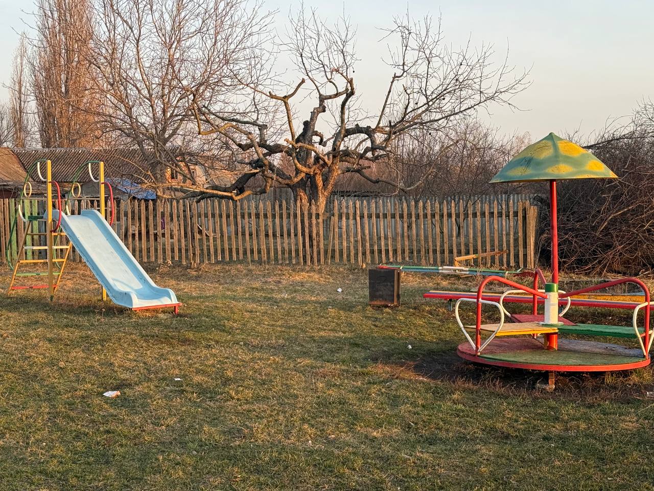 Детская площадка "Сказочный уголок" в с. Раздорное, Белгородская область, находится в аварийном состоянии: игровые элементы изношены, покрытие разрушено, отсутствует безопасное резиновое покрытие и освещение. Это создает риски для детей дошкольного и младшего школьного возраста, ограничивает их физическое развитие и досуг в селе с населением около 2000 жителей. Родители вынуждены ездить в соседние населенные пункты, что неудобно и небезопасно.